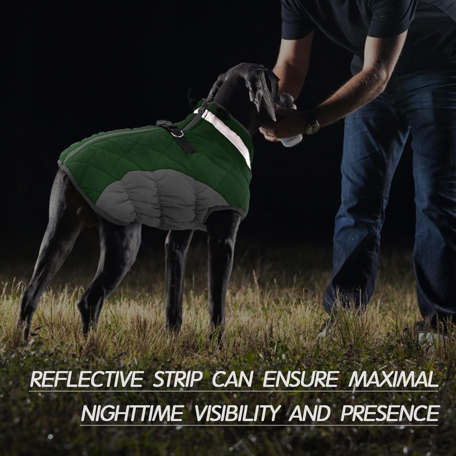 FUAMEY Dog Coat for Medium Dogs,Waterproof Dog Winter Jacket with Harness Built in Puppy Cold Weather Coats Reflective Pet Vest with Zipper Warm Fleece Dogs Snowsuit Windproof Green M