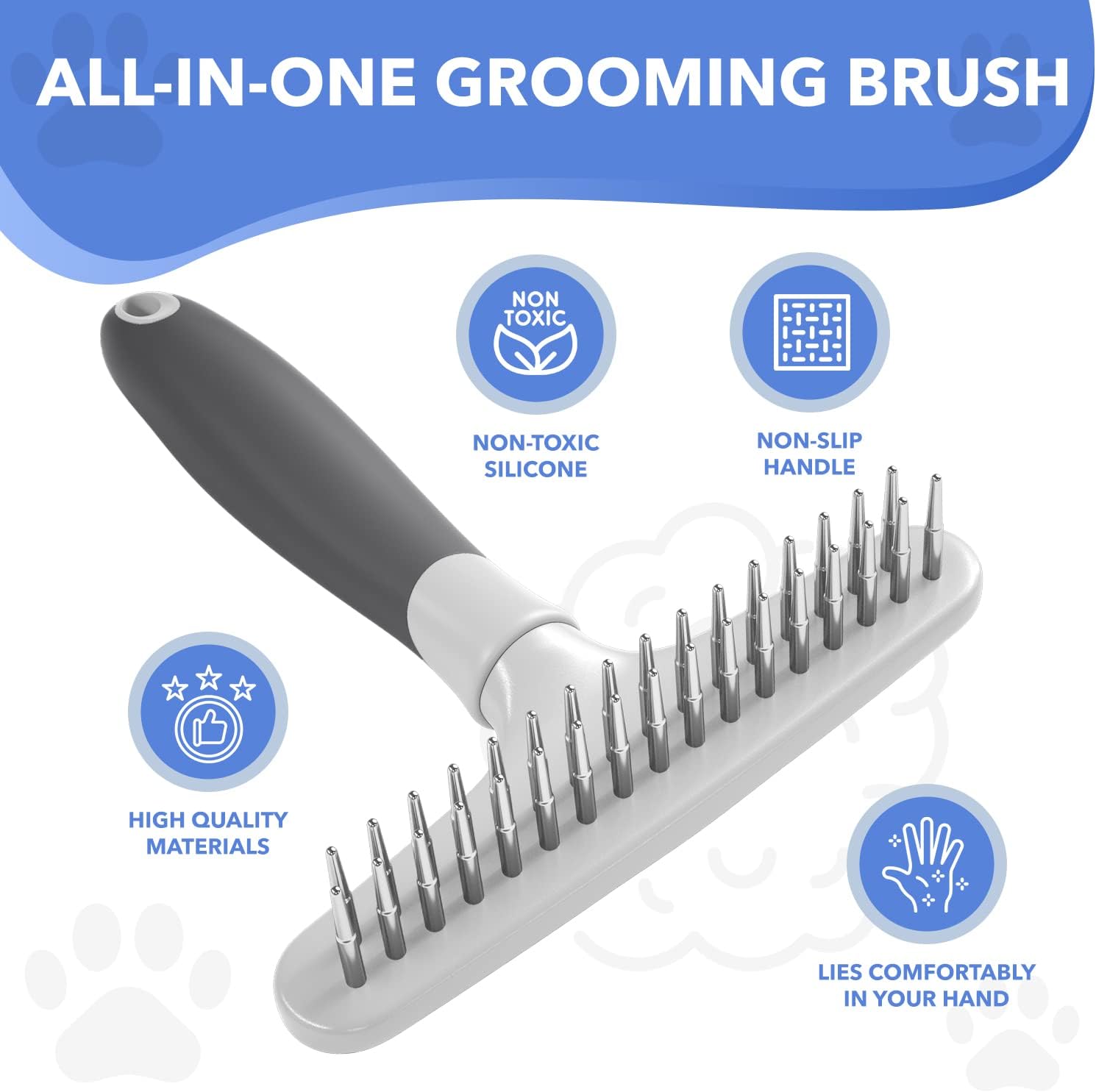 - The innovative design allows air to your pet's skin and stimulates the hair follicles, allowing the release of healthy oils. The contouring handle is strong and durable, made of a non-slip, non-toxic silicone. The stainless pins take the unnecessary ’hurt’ out of grooming your pet.