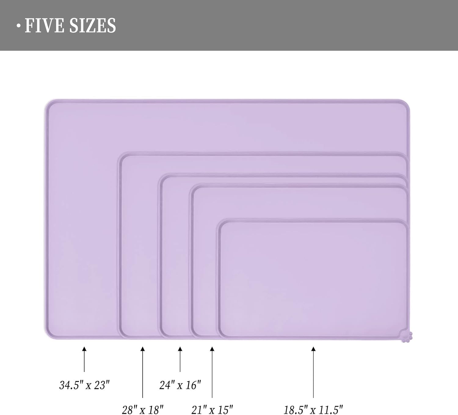 - Various sizes available: our pet mats come in 5 different sizes - 18.5" x 11.5", 22" x 14", 24" x 16", 28" x 18", and 32" x 24". Suitable for all kinds of pets, from puppies to large pets, choose the perfect size for your furry friends and avoid messy spills at mealtime