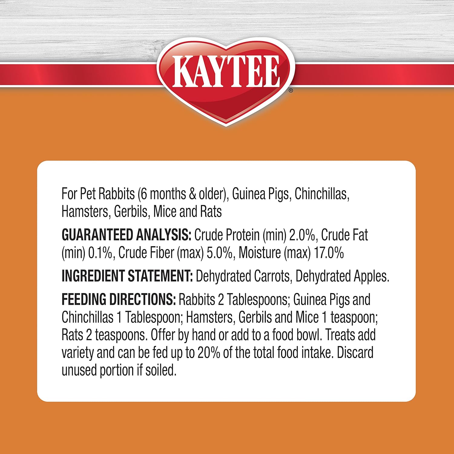 Kaytee Natural Snack with Superfoods For Pet Guinea Pigs, Rabbits, Hamsters, and Other Small Animals, Apple & Carrot, 2.5 Ounces