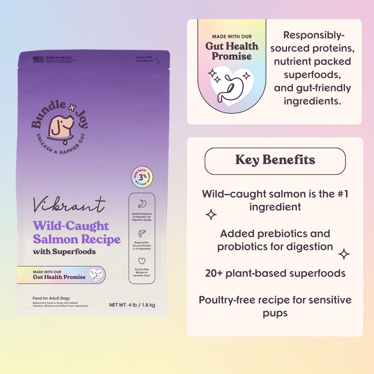 - FOR ALL ADULT BREEDS AND SIZES: Bundle x Joy dog food has omega fatty acids to support healthy skin and a shiny coat and probiotics to support digestion. The kibble pieces are small enough for small breed dogs to enjoy.