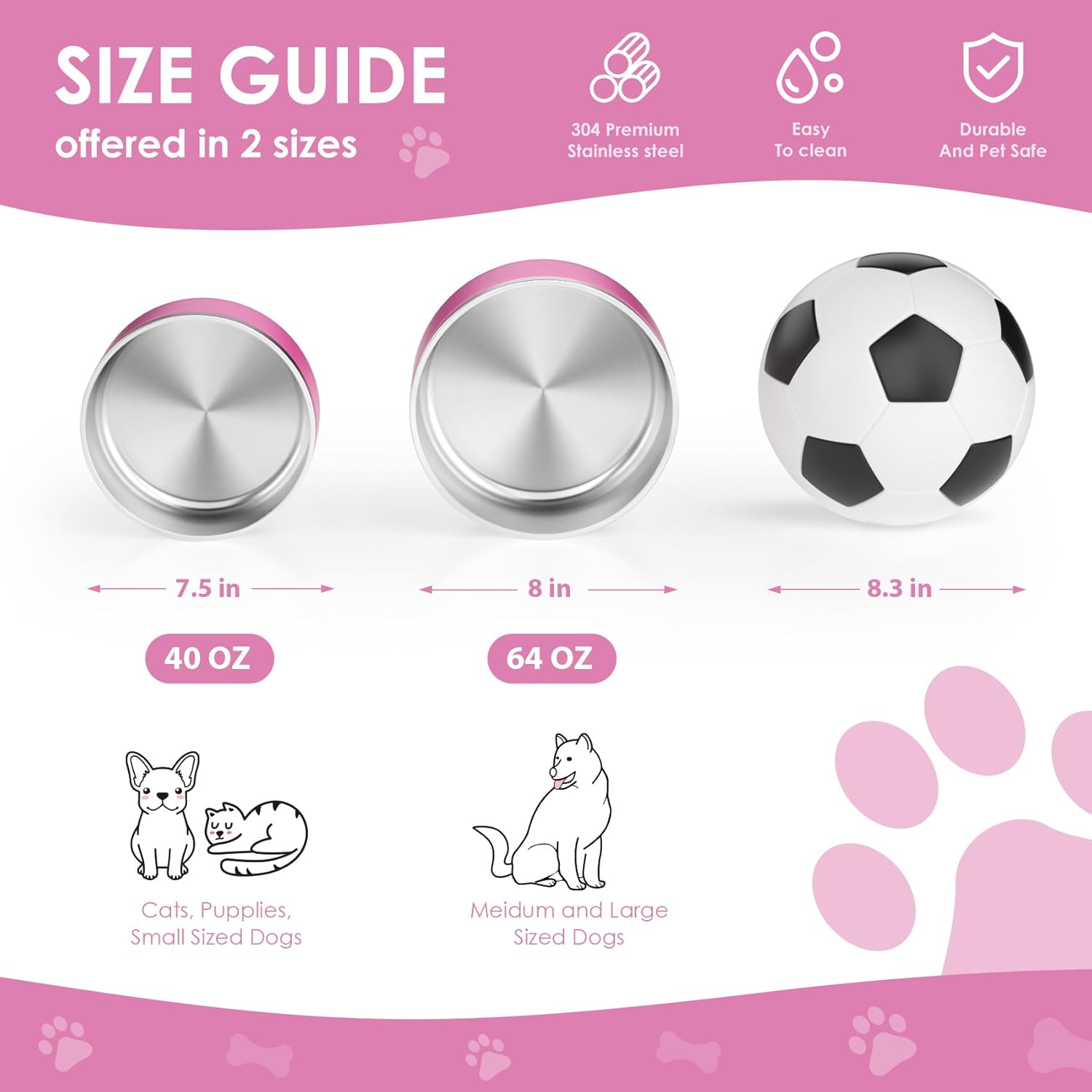 - EASY TO CLEAN-The stainless steel dog water bowl uses polishing technology to create a smooth surface. These crafts can help you easy to clean and wipe. These metal bowls are perfect for dogs, cats, rabbits or other animals.