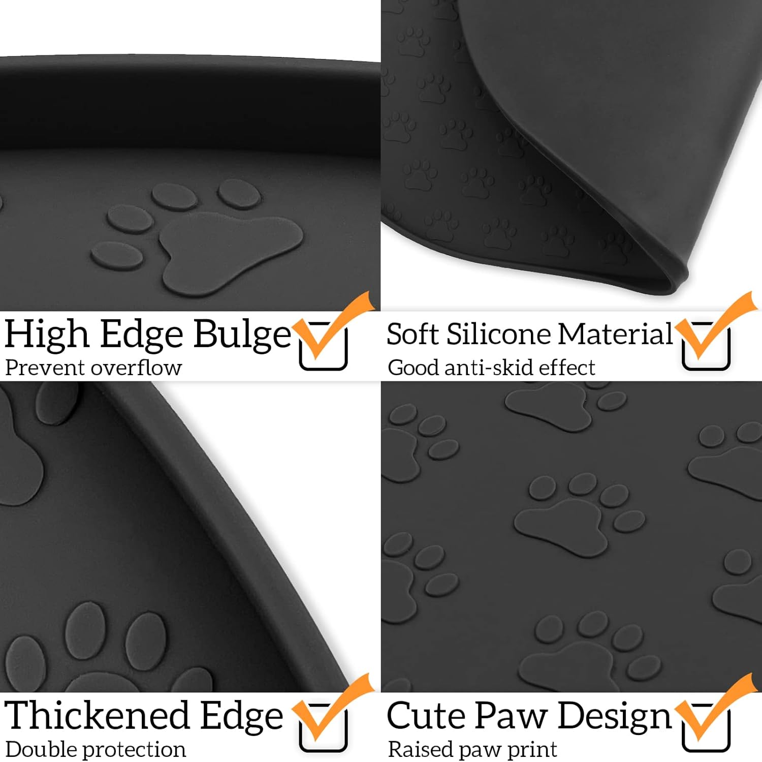 - 100% Waterproof and Anti-Slip: Our dog bowl mat with high-lip edges. Leak-proof pet placemats can prevent food and water overflow, and protect the floor. Prevent pets from eating contaminated food. Non-slip silicone mat keeps the bowl in place.
