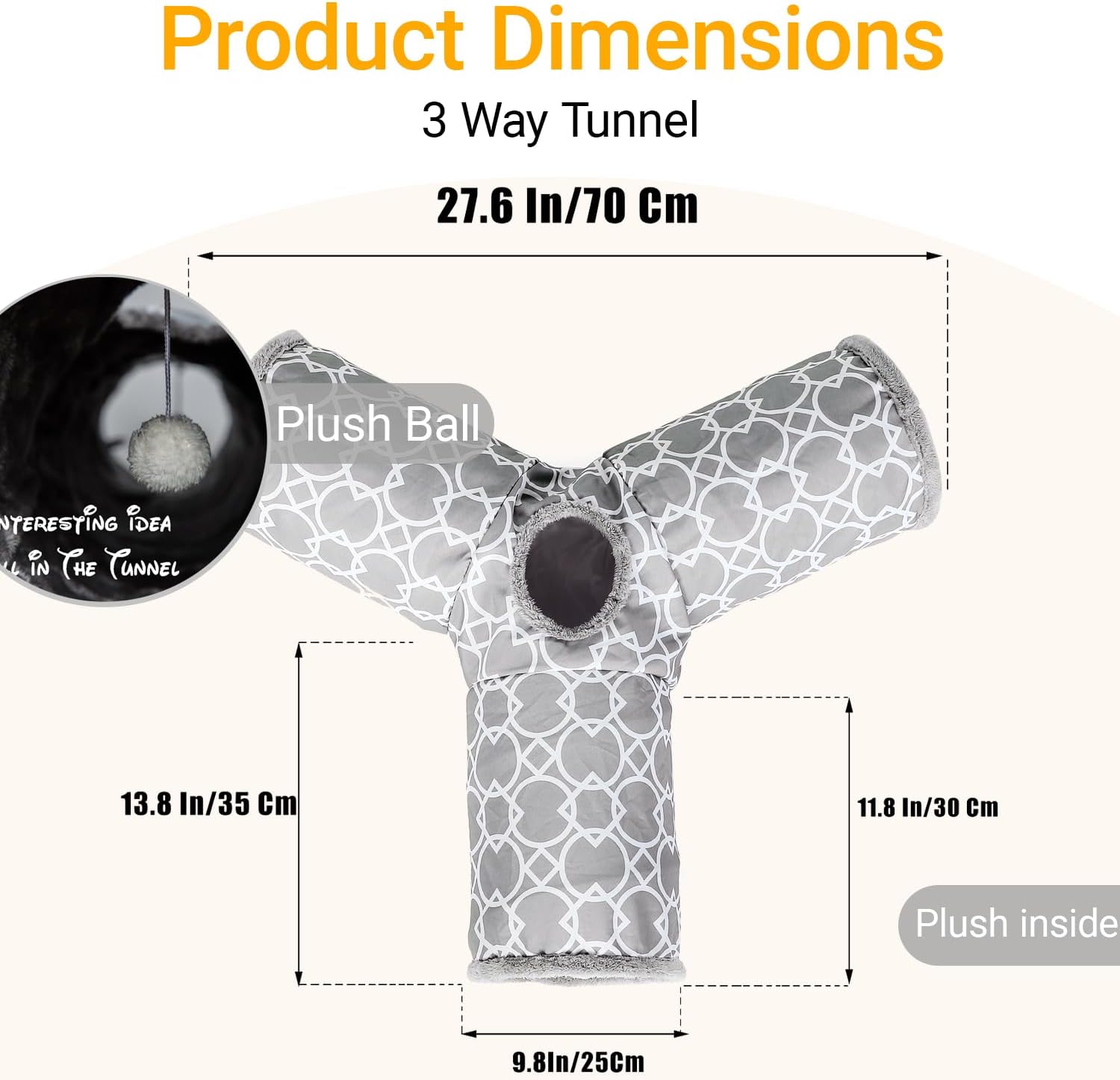 LUCKITTY Geometric 3 Way Cat Tunnel with Plush Inside,Cats Toys Collapsible Tunnel Tube with Balls, for Rabbits, Kittens, Ferrets,Puppy and Dogs