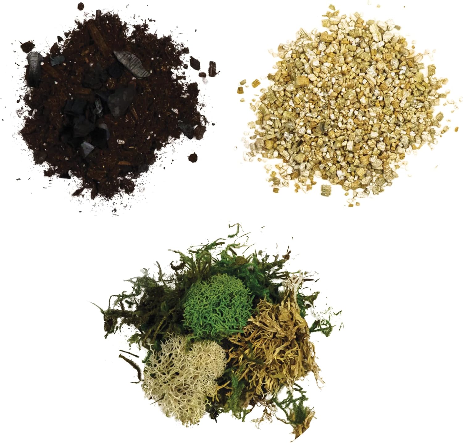 - PREMIUM INGREDIENTS - The included Moss mix is preserved, and it will keep looking fresh without any maintenance for a long time. The beautiful bright moss colors are the perfect finishing touch to any terrarium. The Blended Potting Soil increases drainage abilities while allowing airflow, and it's a perfect mix of nutrients. Charcoal is added for its natural ability to retain nutrients. Our Fine Grade Horticultural Vermiculite soil amendment provides the right amount of water drainage.