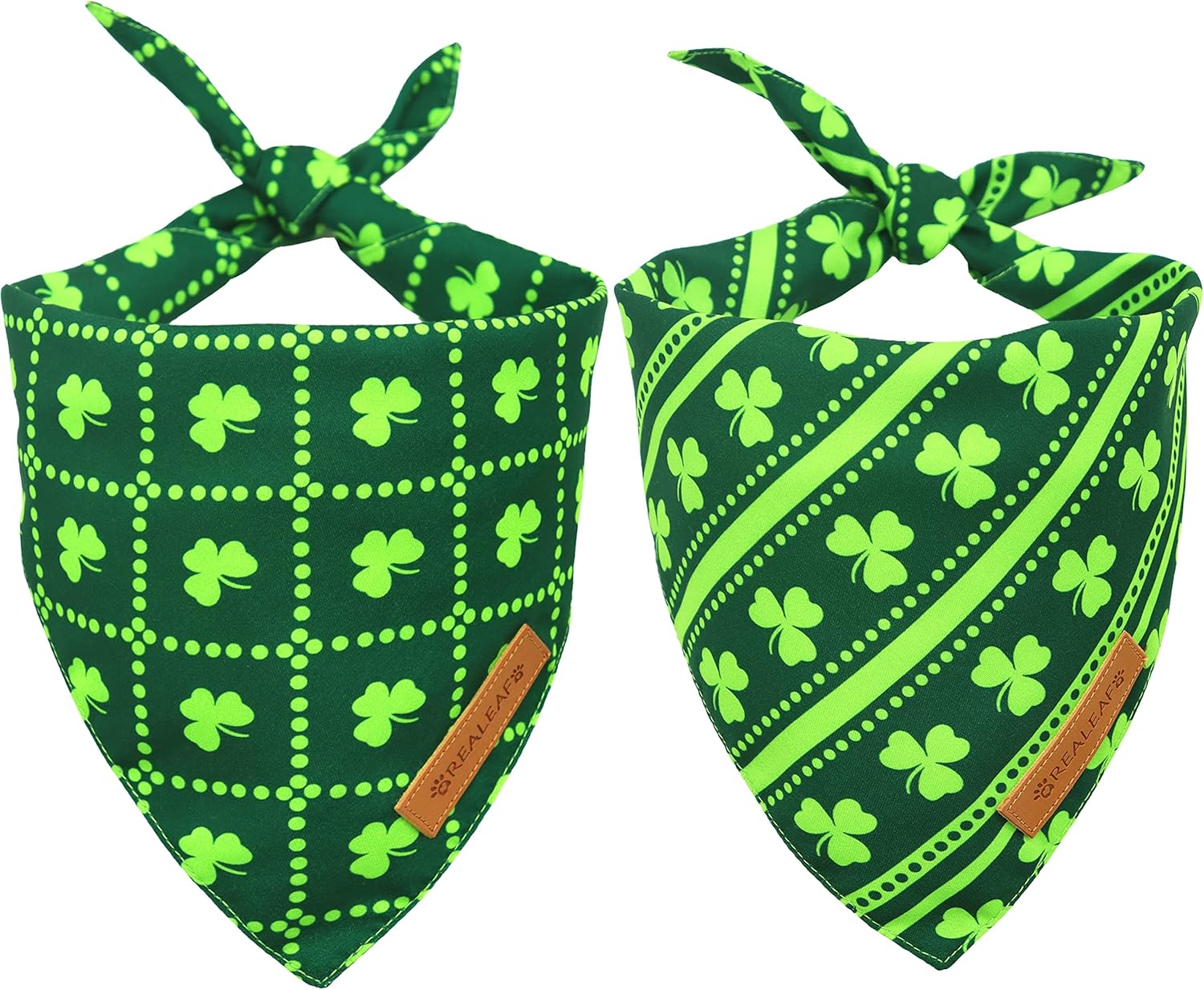Realeaf St. Patrick's Day Dog Bandanas 2 Pack, Reversible Green Shamrock Pet Scarf for Boy and Girl, Premium Durable Fabric, Holiday Bandana for Large and Extra Large Dogs (X-Large)