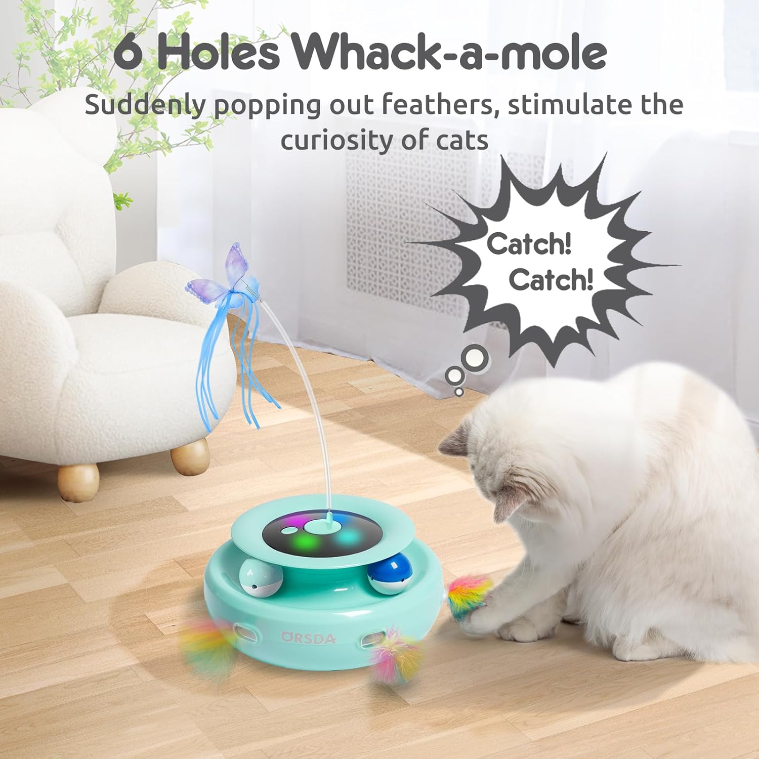 - 🎁[3-In-1, Cats’ 3 Favorite Games] ORSDA Indoor Cat Interactive Cat Toy is designed to stimulate your cat’s natural instincts: chase, pounce, ambush. The spinning ball stimulates your cat's senses. Randomly popping feathers stimulate the hunting instinct. Swirling butterflies encourage chasing. All of this will keep your cat happy and burn off their energy!