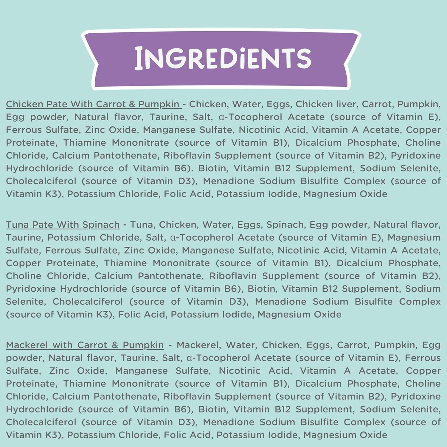 - GRAIN FREE & NON-GMO: Our pate tuna, carrot, & salmon is prepared without any grains, artificial additives, or by-products, as our goal is to feed cats the way nature intended. We always source wholesome ingredients to promote optimal health and nutrition