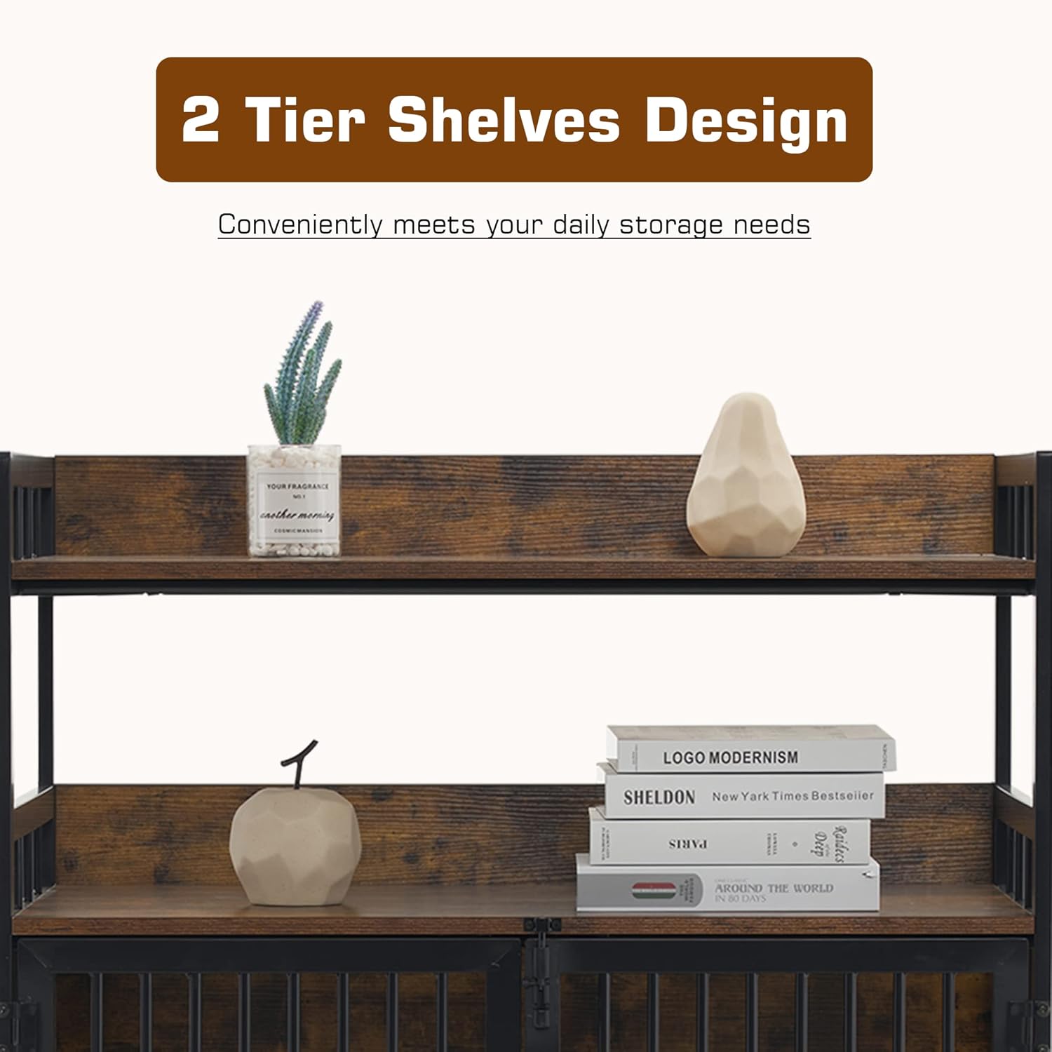- Combining Function and Style: This dog kennel includes two-tier shelves for your storage needs, and its furniture style design adds a cozy, homey touch