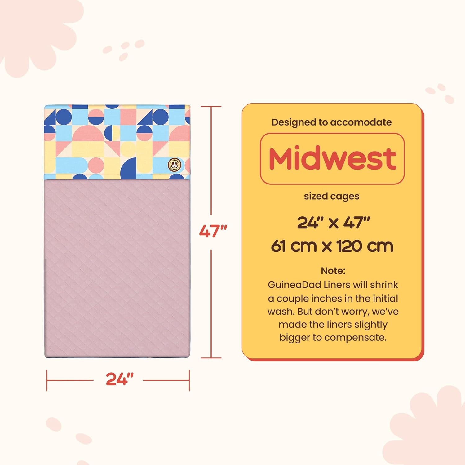 GuineaDad Premium Liner – Fleece Guinea Pig Cage Liner – Ultra-Plush Reusable Fleece Bedding with Waterproof Bottom – (Cotton Candy)