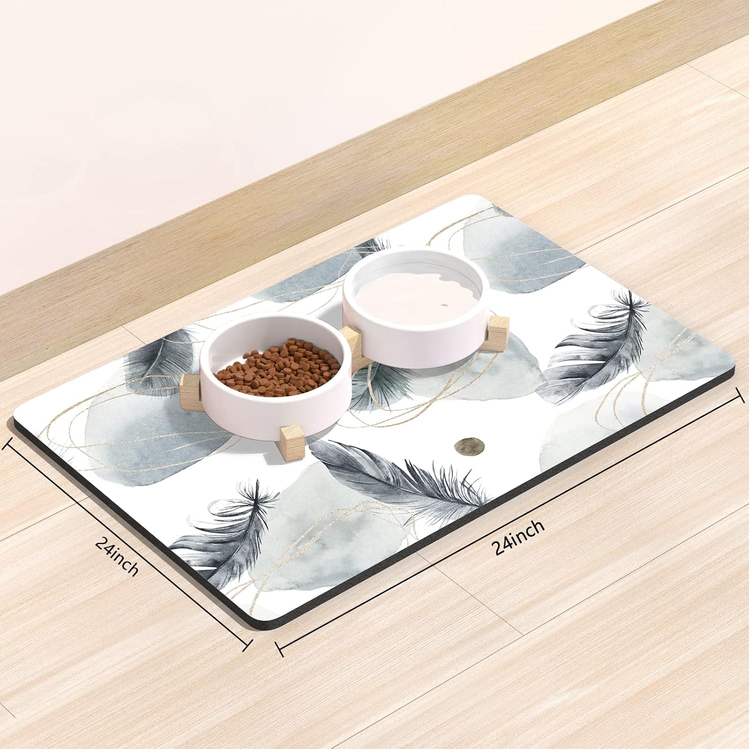 Rnivvi Dog Food Mat, 16" x 24" Absorbent Dog Cat Bowl Mat for Food and Water, Cute Anti-Slip Rubber Pet Feeding Rug Protect Floors, Puppy Placemat for Feeding & Watering Supplies, Abstract Plume