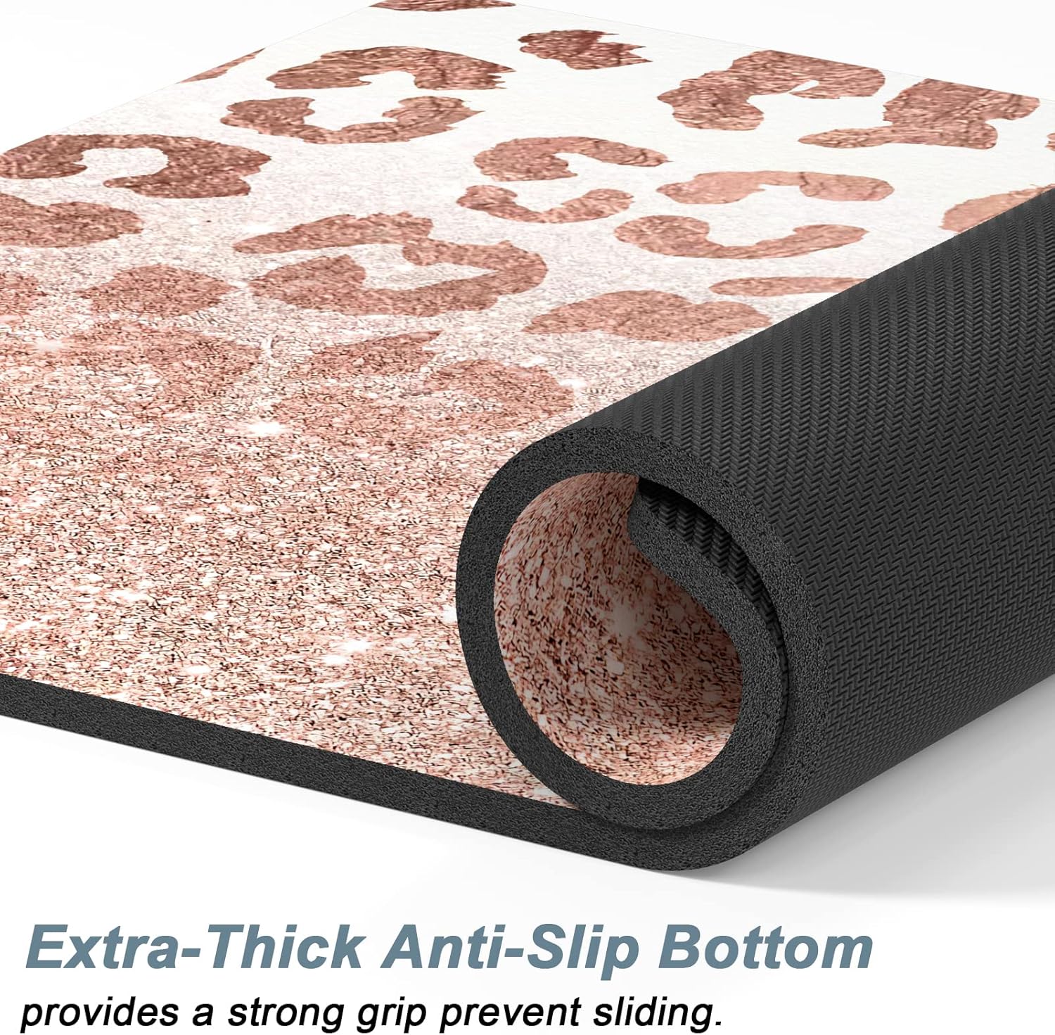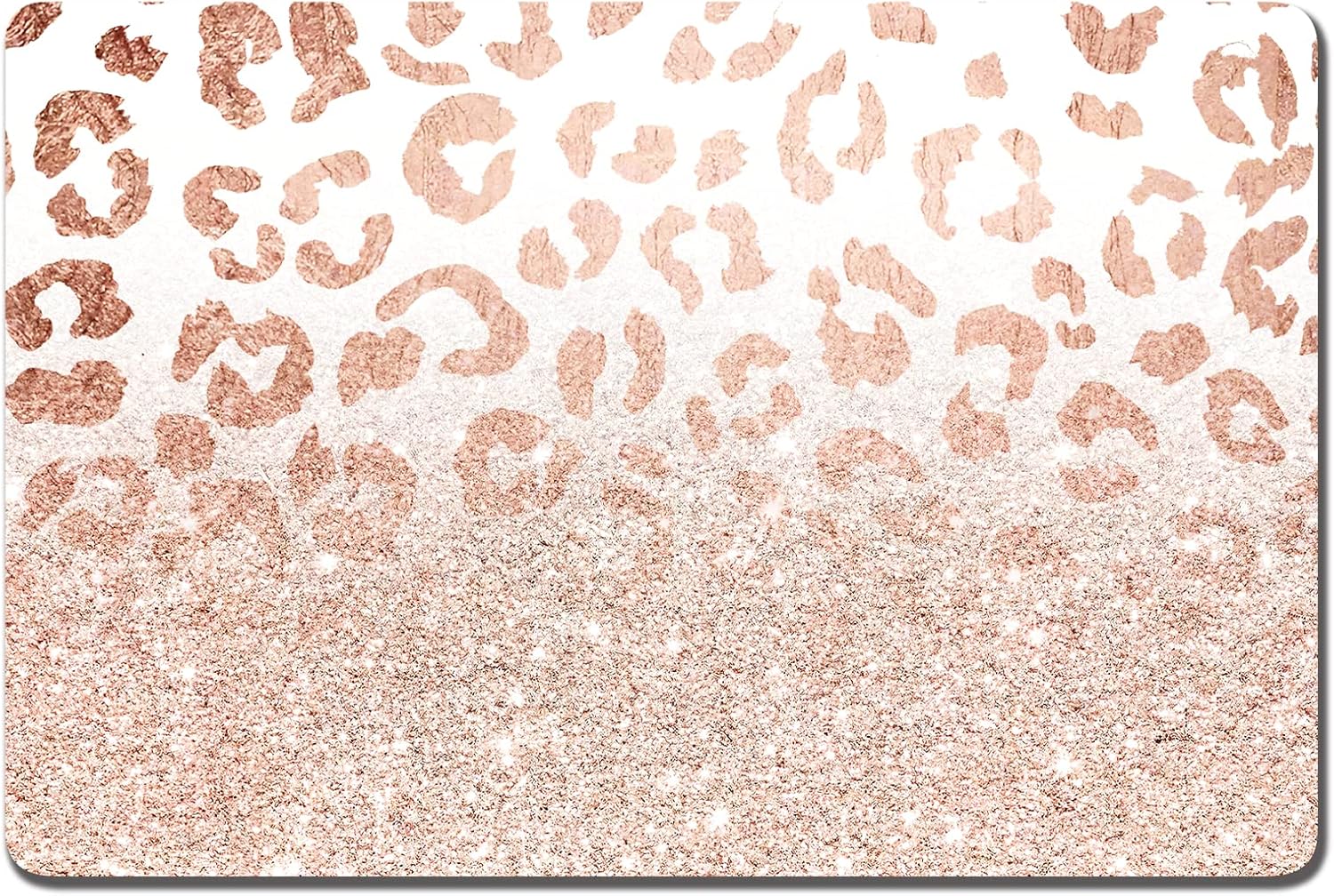 Rnivvi Dog Food Mat, 16" x 24" Leopard Absorbent Dog Cat Bowl Mat for Food and Water, Cute Anti-Slip Rubber Pet Feeding Rug Protect Floors, Puppy Placemat for Feeding & Watering Supplies, Rose