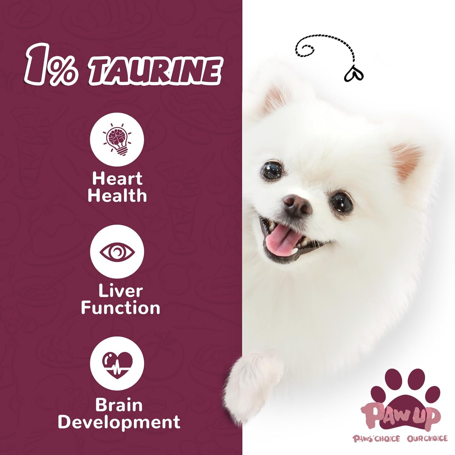 - Taurine for Dogs: Taurine is an essential amino acid that offers several benefits for dogs. It helps regulate heart function and maintain proper blood pressure and helps prevent eye damage caused by high levels of fat in the diet.Taurine plays a critical role in supporting brain development and cognitive function in dogs. Ensuring your furry friend receives a balanced diet packed with taurine-rich ingredients can help promote their overall health and wellbeing