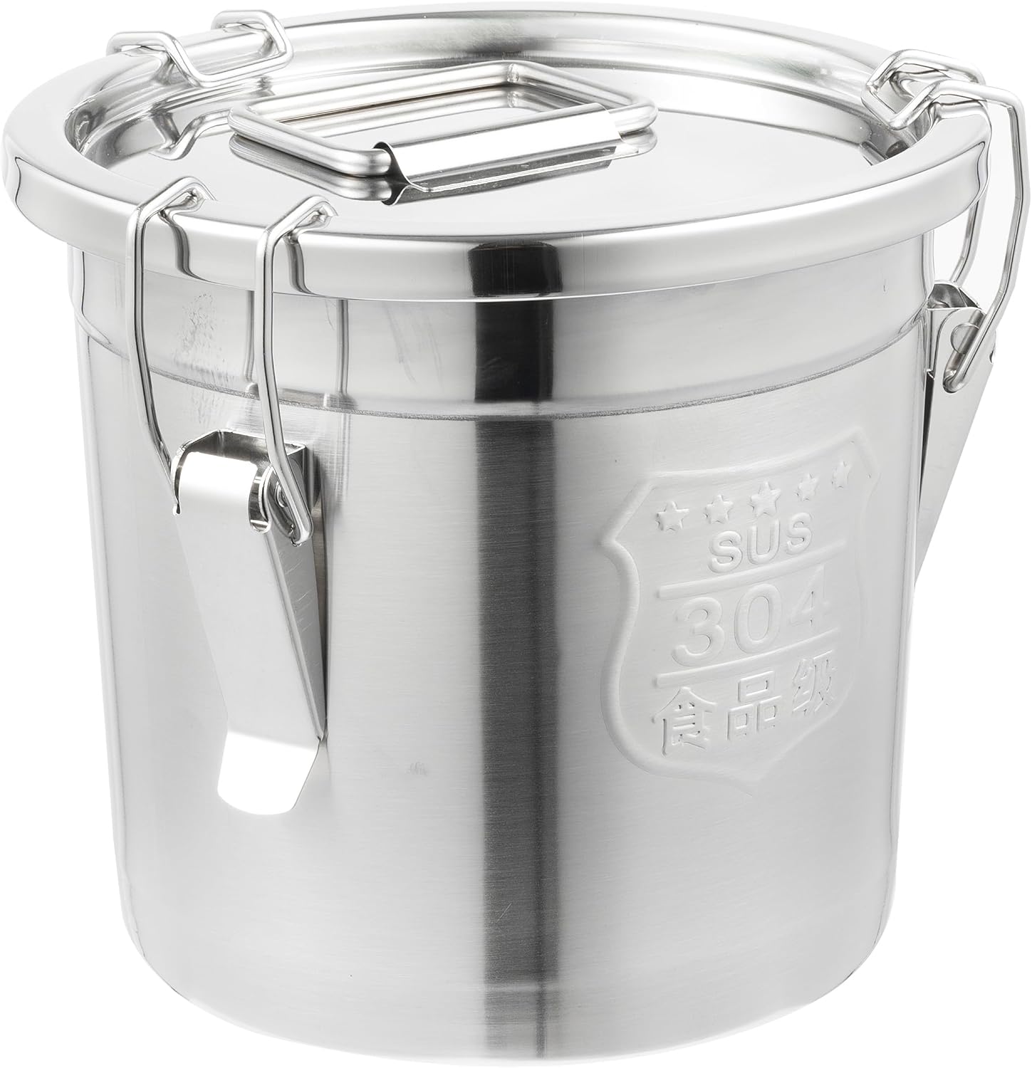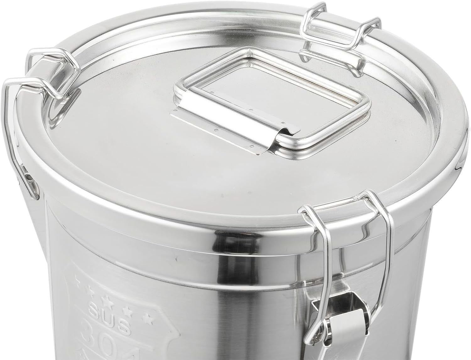 DYNAMI 304 Stainless Steel Containers With Lid,202oz Airtight Flour Container for Kitchen,5-10lbs Metal Airtight Canisters Milk Jug Coffee Bean Cookies Canisters w/Locking Clamp (6L/1.6Gal)