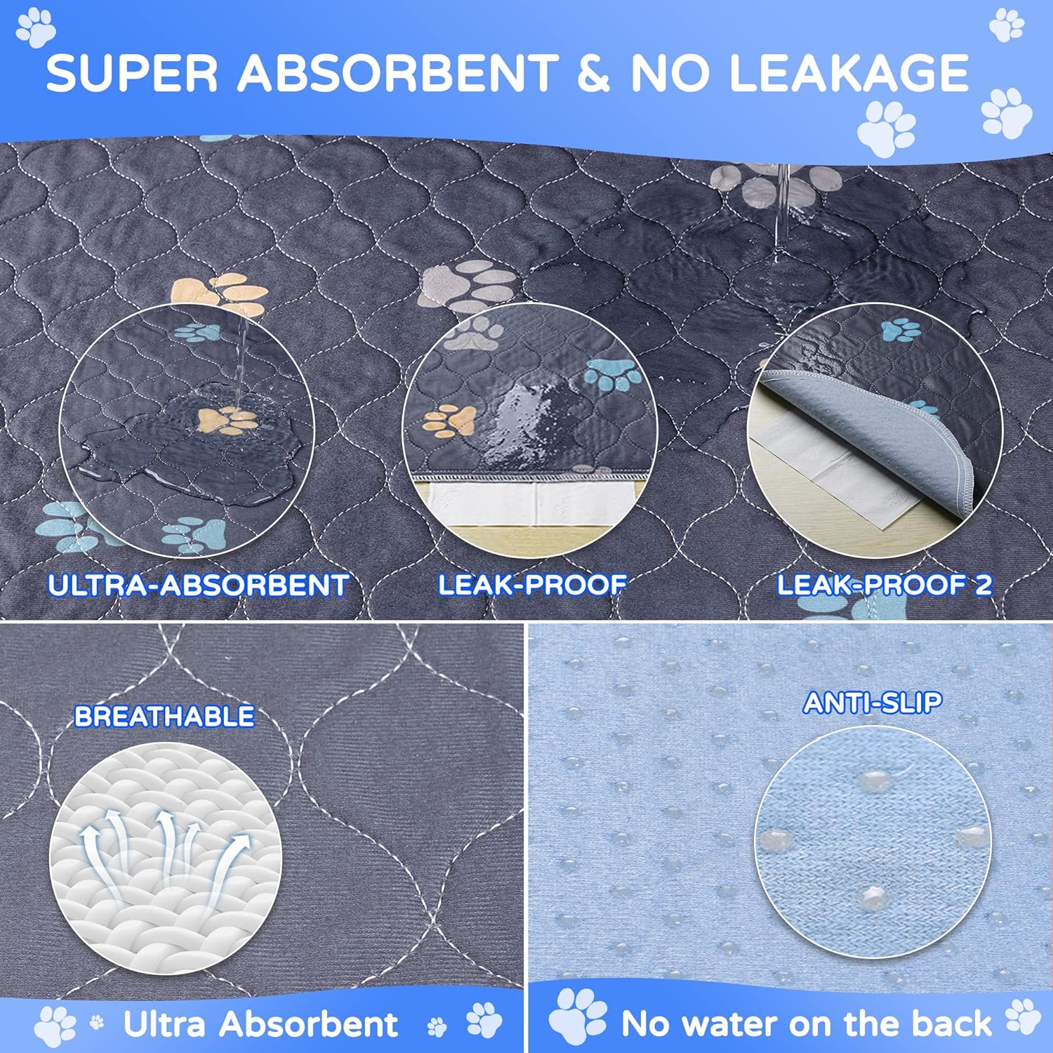 - [Multipurpose] Our waterproof dog mats are 92 x 104cm, perfect size for puppies. The dog pee pad can be used in dog kennel & dog crates, training puppies pee in a playpen or assisting incontinence elderly. They are ideal for protecting carpet, wood floor, sofa, car seats during travel