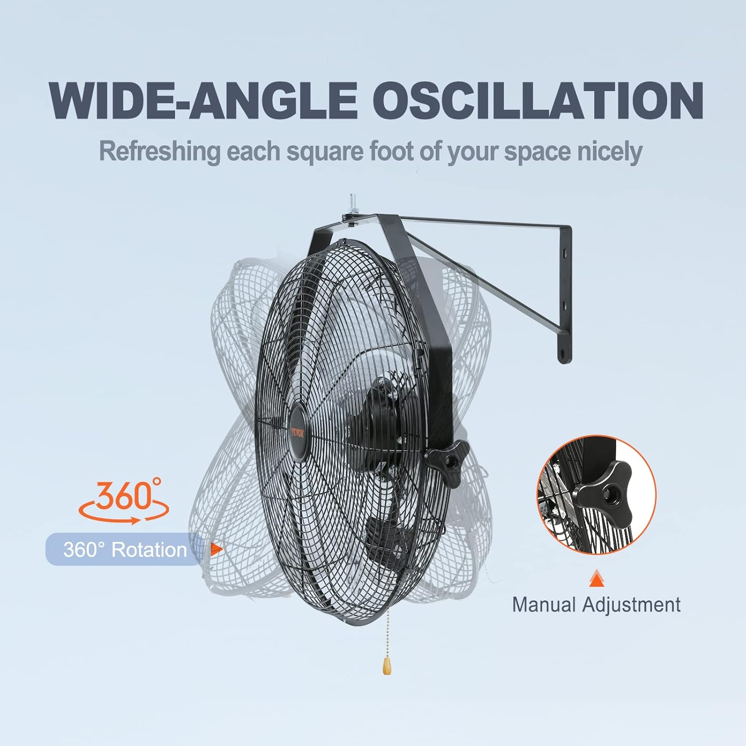 VEVOR 18 Inch Wall Mount Fan, 3-speed IP44 Waterproof, Max. 4150 CFM Wall Mounted Fan for Outdoor, Commercial, Residential, Greenhouse, Workshop, Patio, Black, ETL Listed