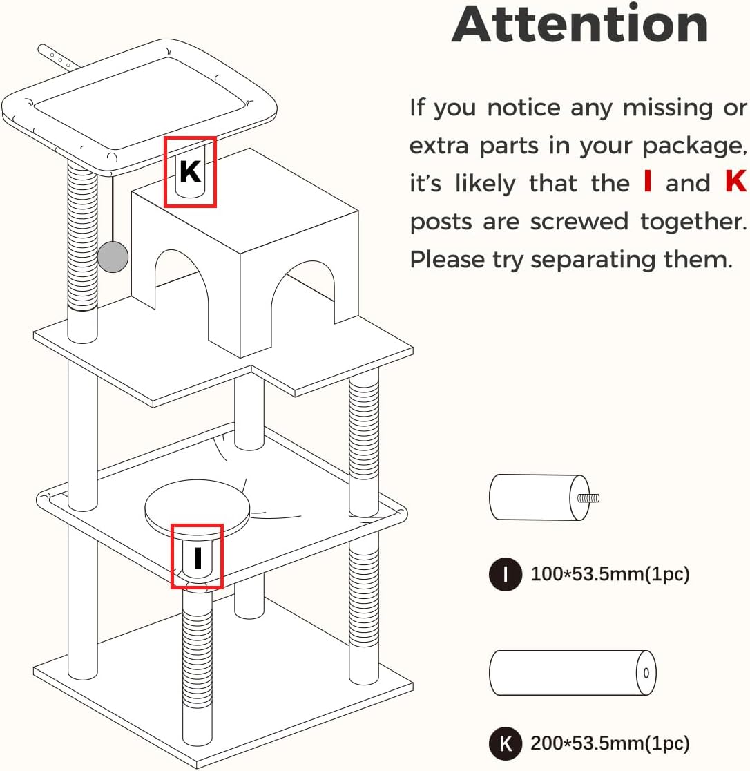 - Easy to Assemble: This cat tree is equipped with all the hardware and tools. The installation process is straightforward and hassle-free. You can easily follow the instructions provided in the product's manual for installation. If you have any questions or concerns, our customer service team is readily available to assist you.
