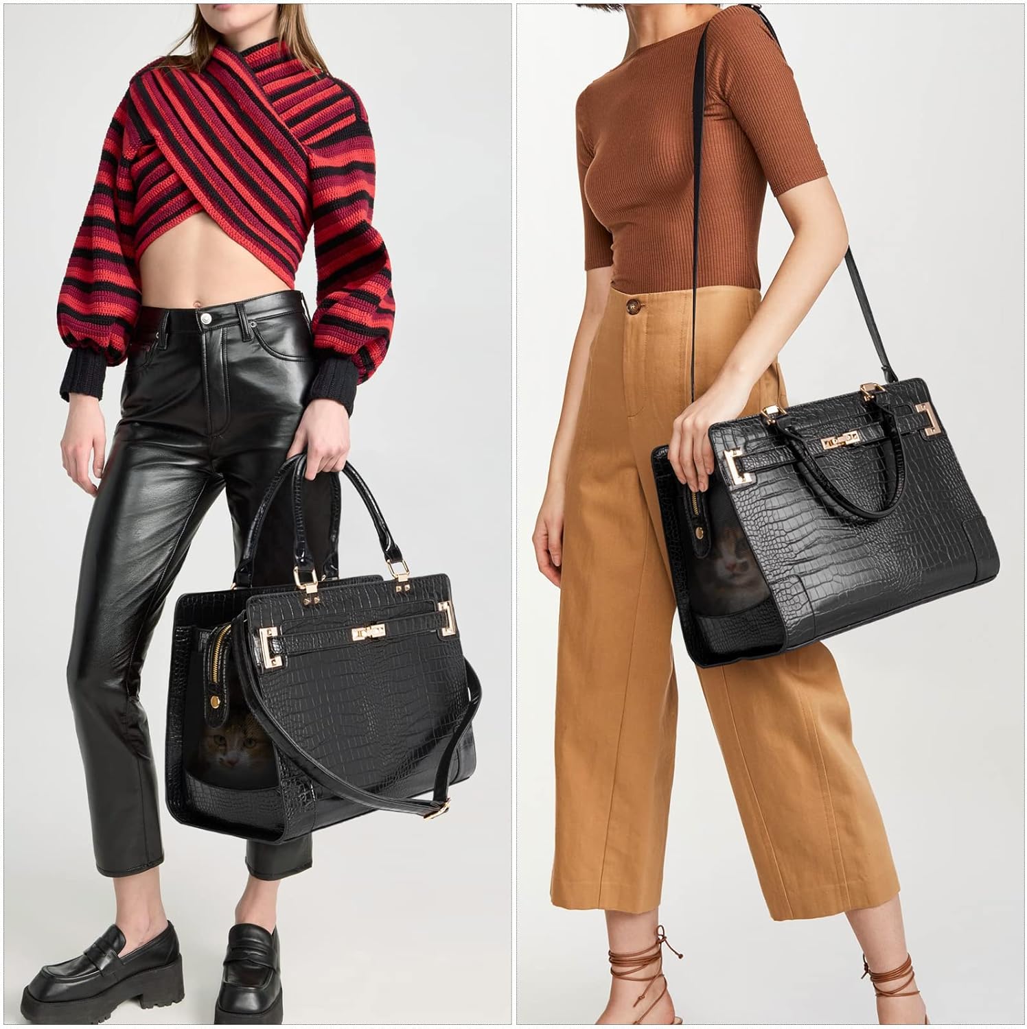 - š[ Breathable & Visible ] Our pet purse both sides are mesh design, convenient for the pet to breathe the fresh air. pet feel cool and comfortable in the bag. Besides, pet can see outside, but people out cannot see the pet inside.