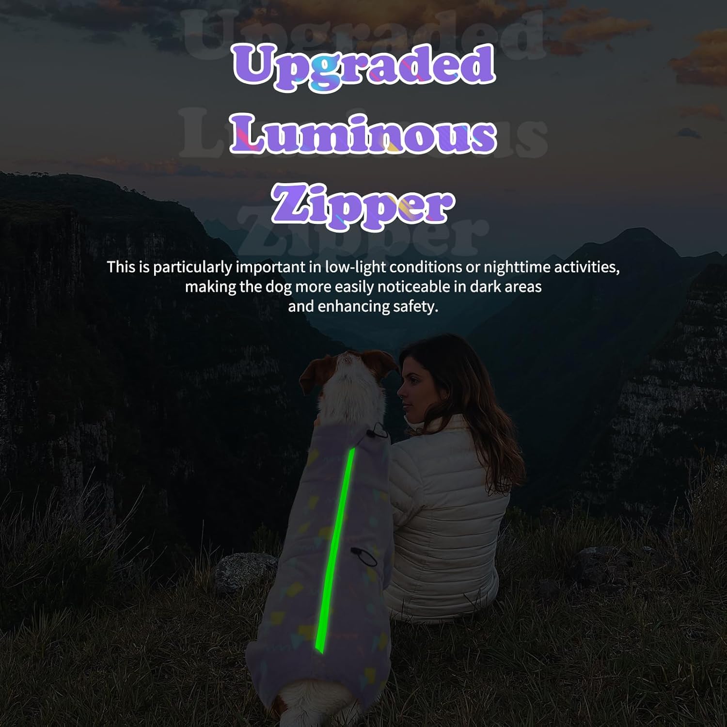 ROZKITCH Fleece Pajamas Dog Fleece Pajamas, Pet Windproof Warm Cold Weather Jacket Vest with Luminous Zipper, Pullover Jumpsuit Apparel Outfit Clothes for Small Dog Geometry 2XS