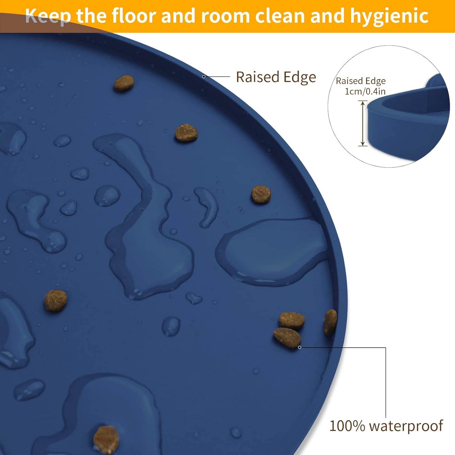 - 100% Waterproof and Anti-Slip: Our dog bowl mat with high-lip edges. Leak-proof pet placemats can prevent food and water overflow, and protect the floor. Prevent pets from eating contaminated food. Non-slip silicone mat keeps the bowl in place.