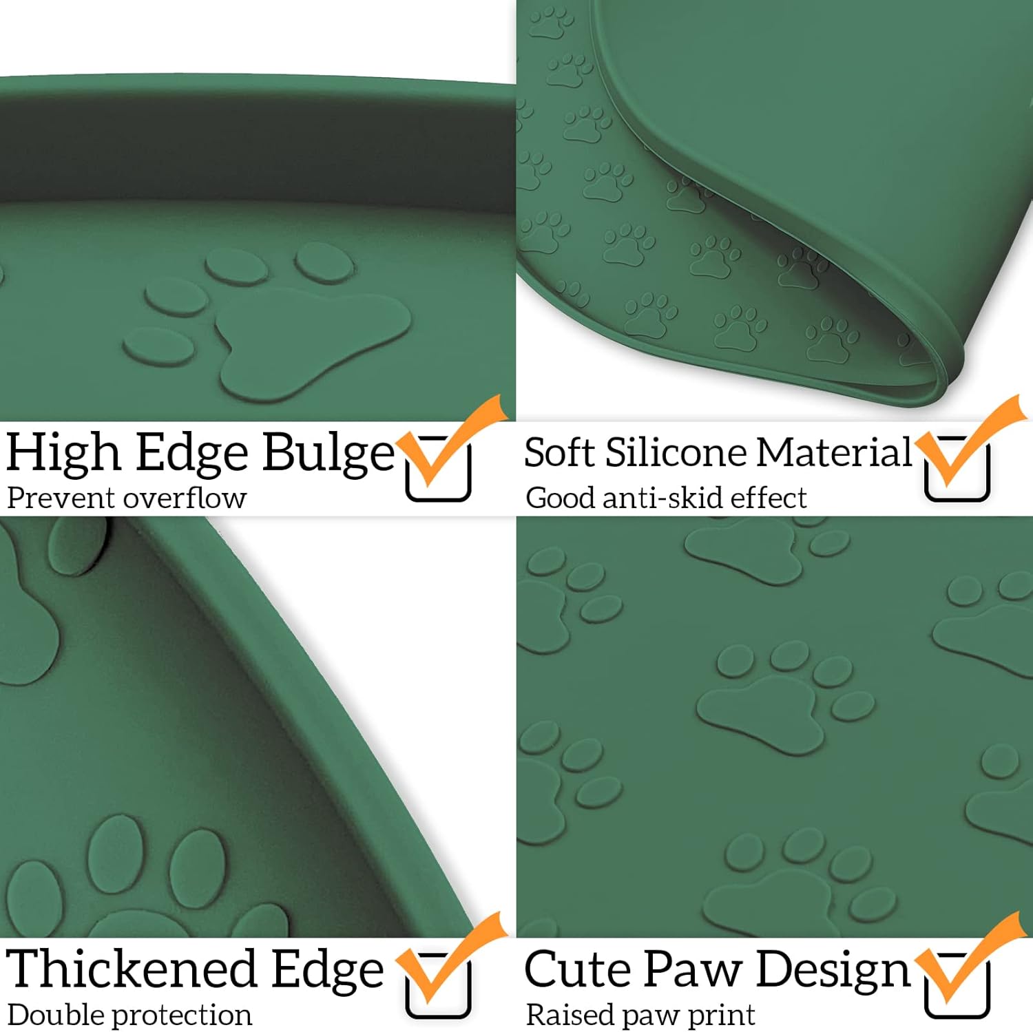 KPWACD Pet Placemat for Dog and Cat, Anti-Slip Waterproof Dogs Feeding Bowl Mat Prevent Food and Water Overflow, Silicone Puppy Dish Mats Suitable for Small Medium Big Pets, Hunter Green, 19" * 12"