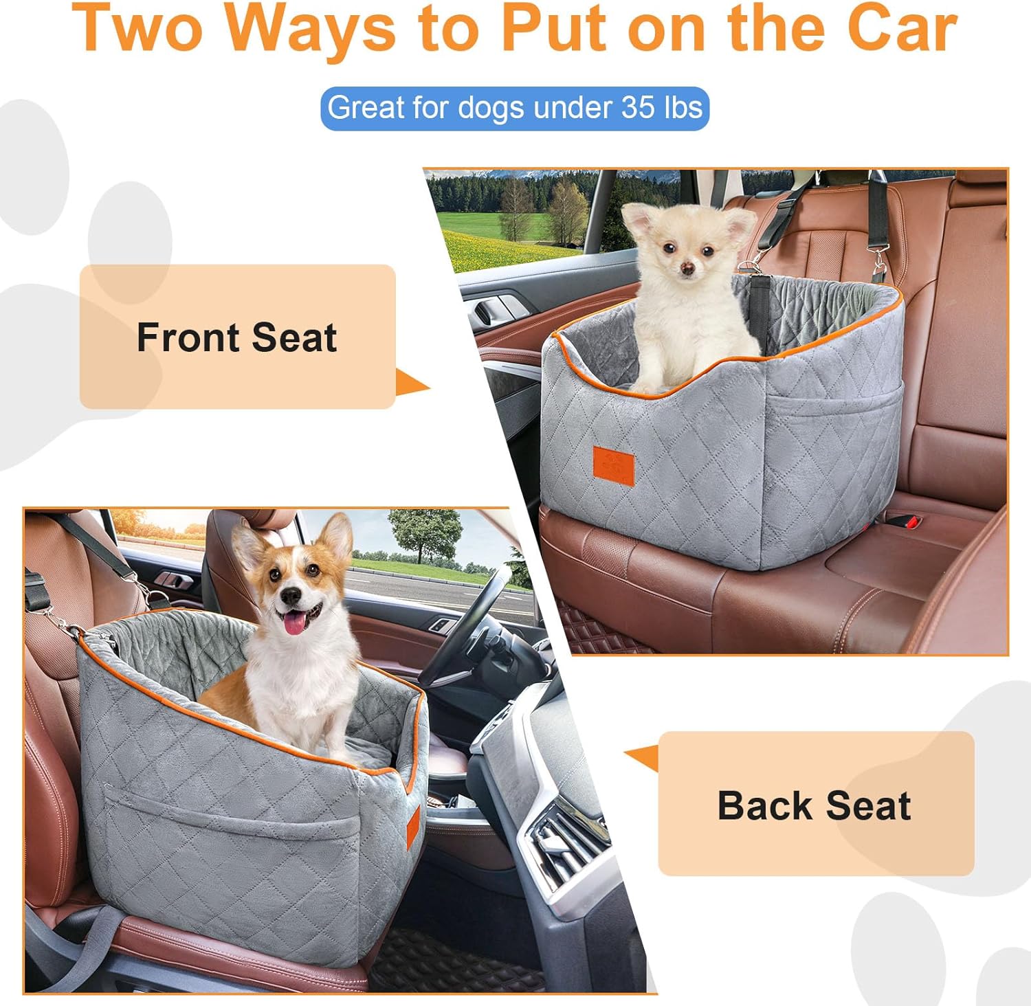Dog Car Seat for Small Dogs, Memory Foam Booster Dog Seat for Dogs up to 35 lbs, Elevated Pet Car Seat with Washable Removable Cover, Storage Pockets (Gray)