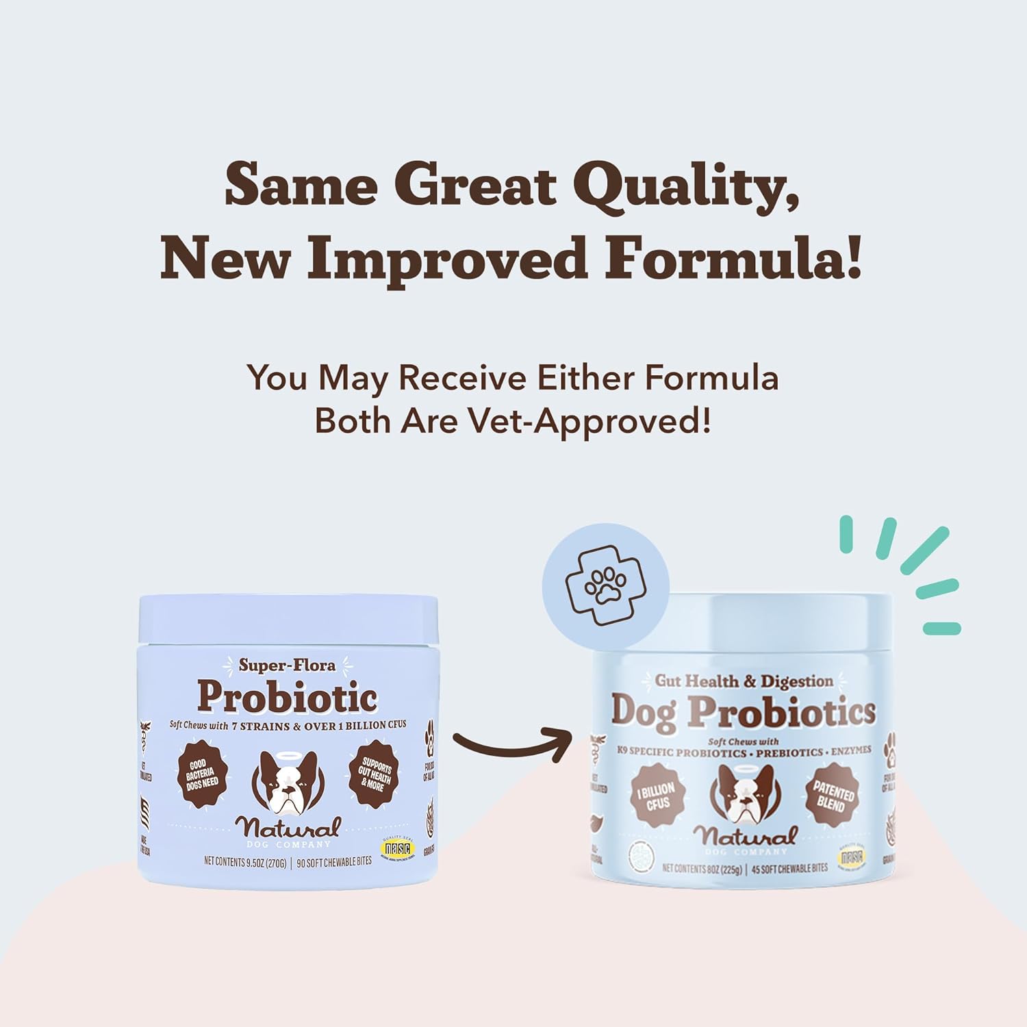 - USA-MADE QUALITY YOU CAN TRUST: Crafted in an FDA-registered, cGMP-compliant facility, our natural dog probiotics are NASC-certified, ensuring safety, purity & effectiveness. Designed for all breeds & life stages, this vet-approved probiotic supplement provides complete digestive & immune support.