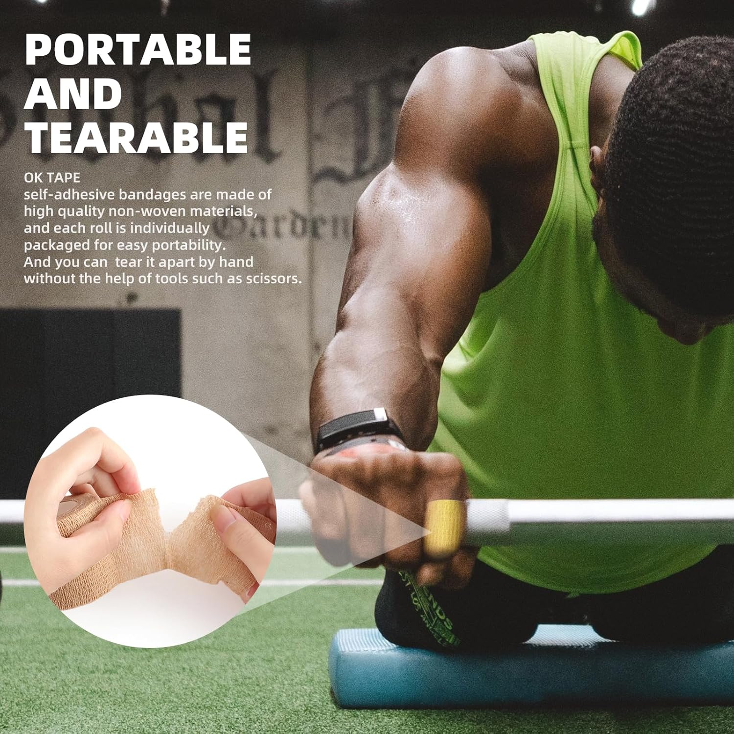 OK TAPE Self Adherent Cohesive Bandages Wrap - 24Packs, 1" x 5 Yards, Non-Woven Self Adhesive Bandage Wrap for Thumb, Finger, Wrist, Ankle, Vet Wrap Bandages Tape (Beige)