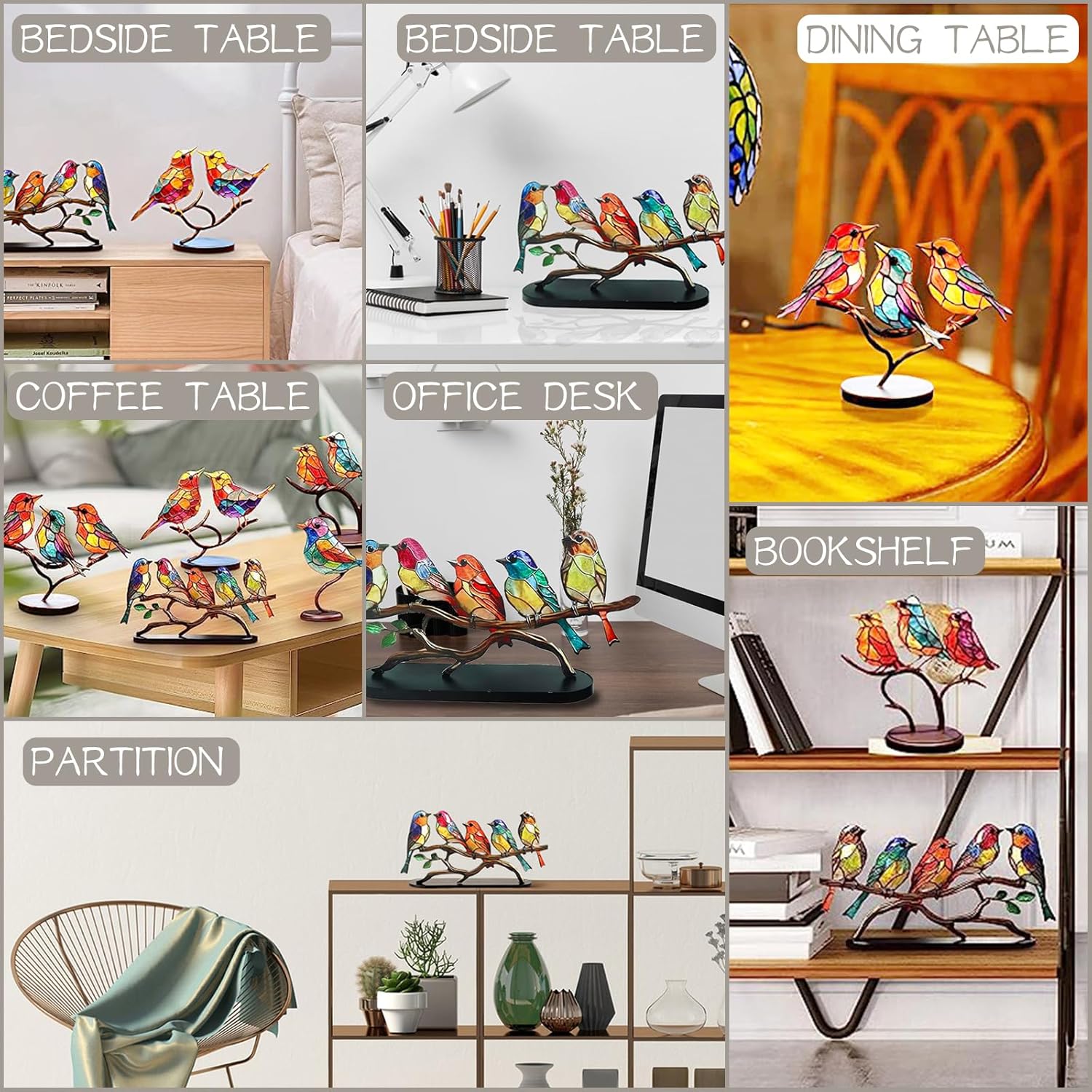 - 【Colorful Bird Decorations】_ Five vividly painted birds on a branch add a cheerful touch to any space, making them perfect bird decorations for desks, shelves, or windows