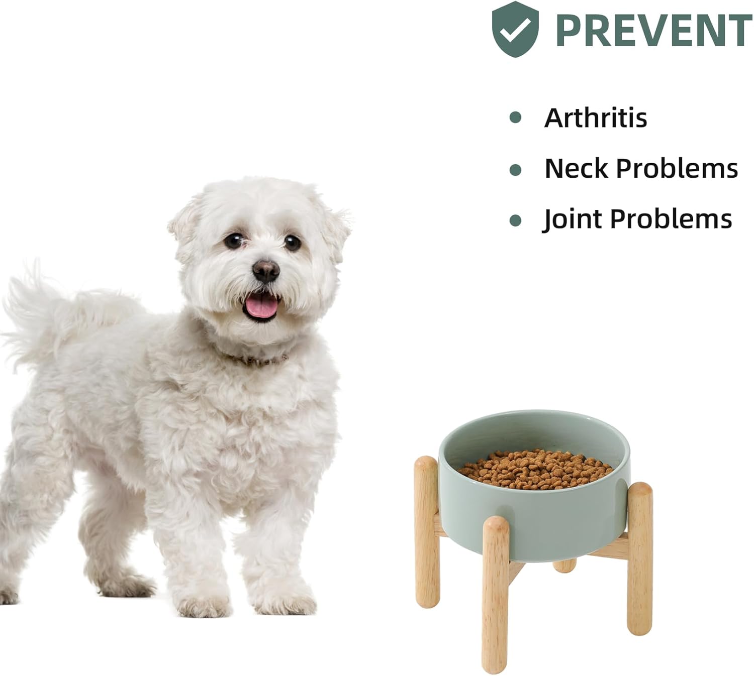Ceramic 6.1inch Raised Dog Bowl with Stand for Small and Medium Dog Dish Pet Food and Water Bowl (Single Bowl with Stand - Light Green)