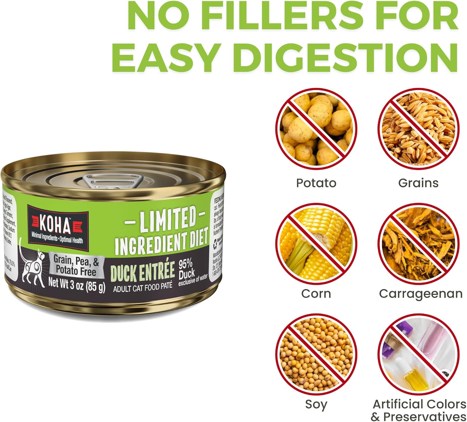 KOHA Limited Ingredient Diet Duck Pate for Cats - Single Meat Wet Cat Food for Sensitive Stomachs - Pate Cat Food with No Fillers - 3oz Pack of 24