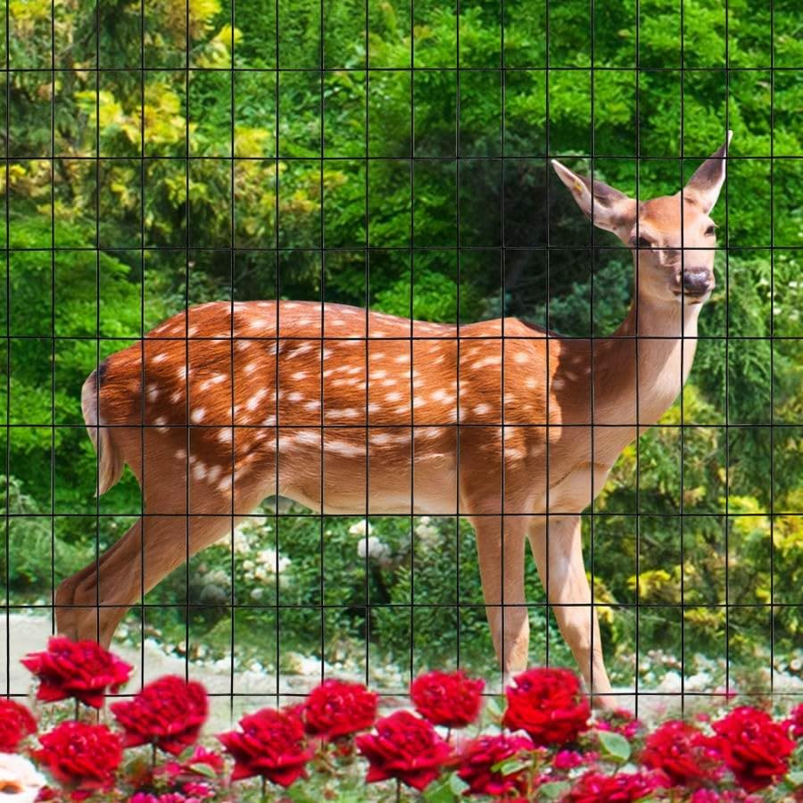 Black PVC Coated Welded Wire Fence 36 Inch x 50 Foot, 2 Inch x 4 Inch 14GA, Garden Border Fencing Roll Vinyl Coating Metal Wire Mesh Hardware Cloth for Yard Vegetable Plant Protection