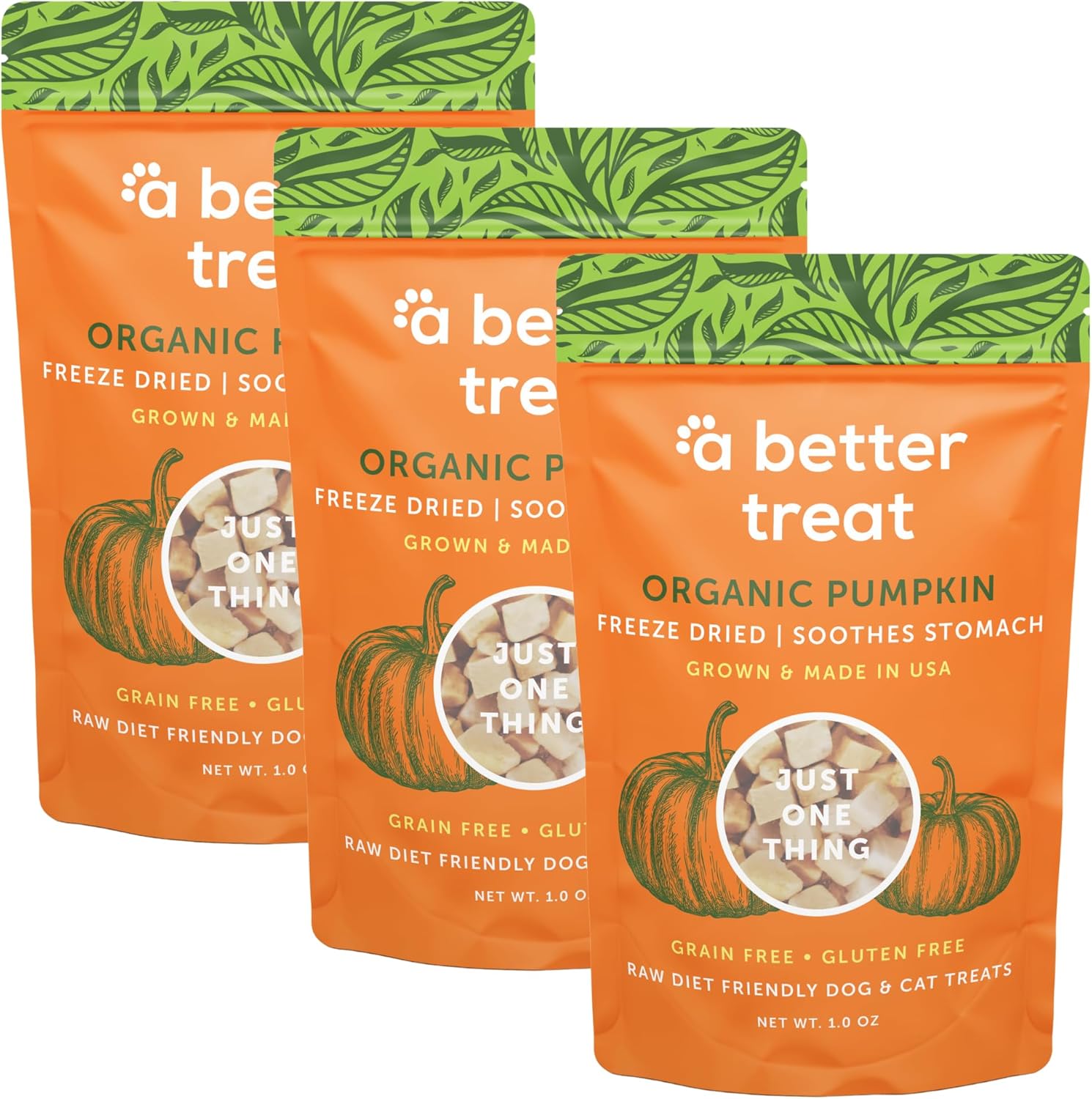 - THE FIRST ORGANIC SINGLE INGREDIENT TREATS – Our line of organic treats are the first single ingredient organic treats on the market. Freeze dried pumpkin are great high value treats and has a great stomach soothing effect in times of diarrhea or constipation. They are non-greasy – perfect for training, as a food topper, or simply a heavenly reward.