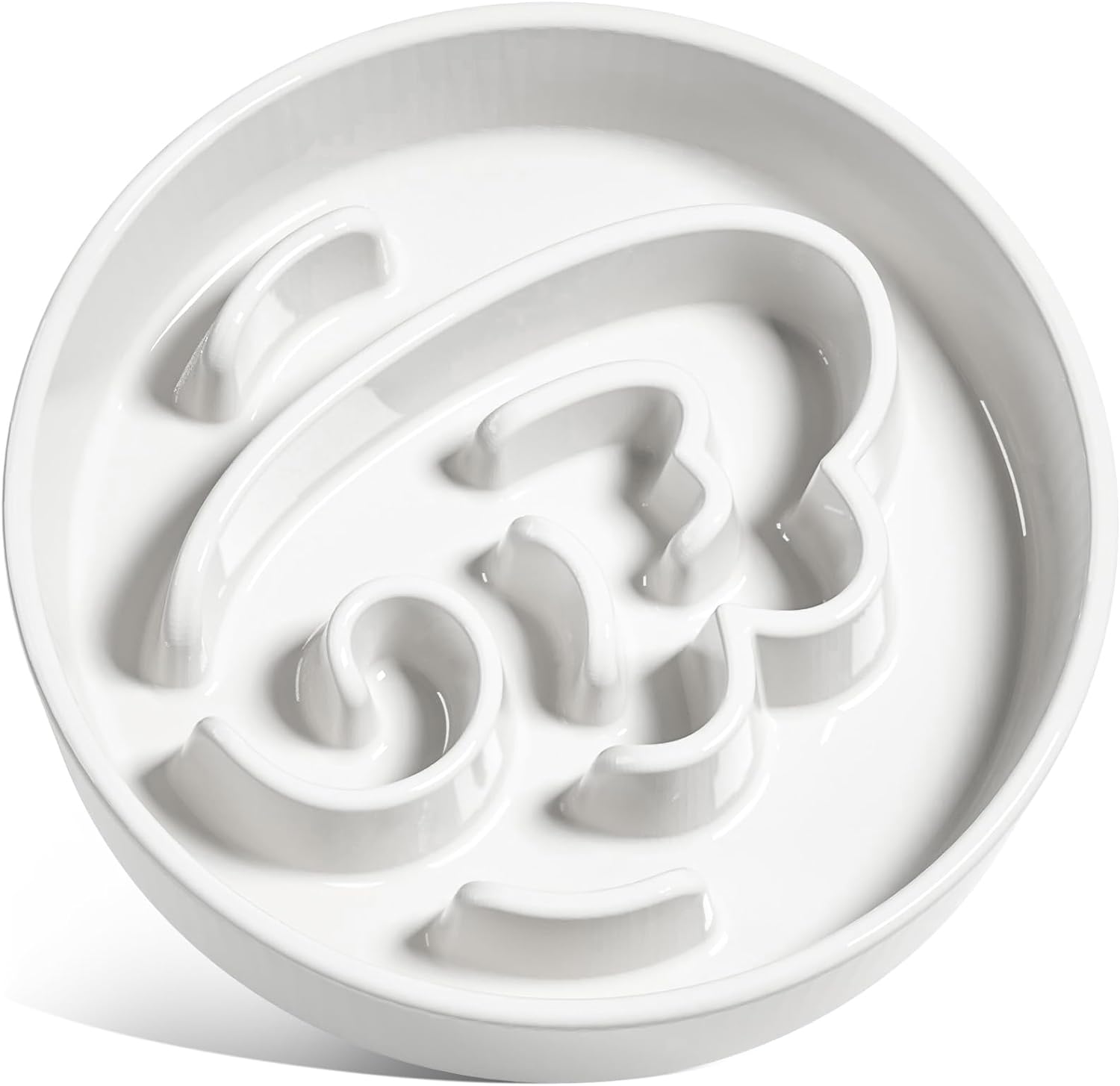 LE TAUCI Slow Feeder Dog Bowls Ceramic,3 Cups Slow Feeding Dog Bowl Medium Large Breed, Pet Bowl for Fast Eaters, Puzzle Pet Dishes, Angle White