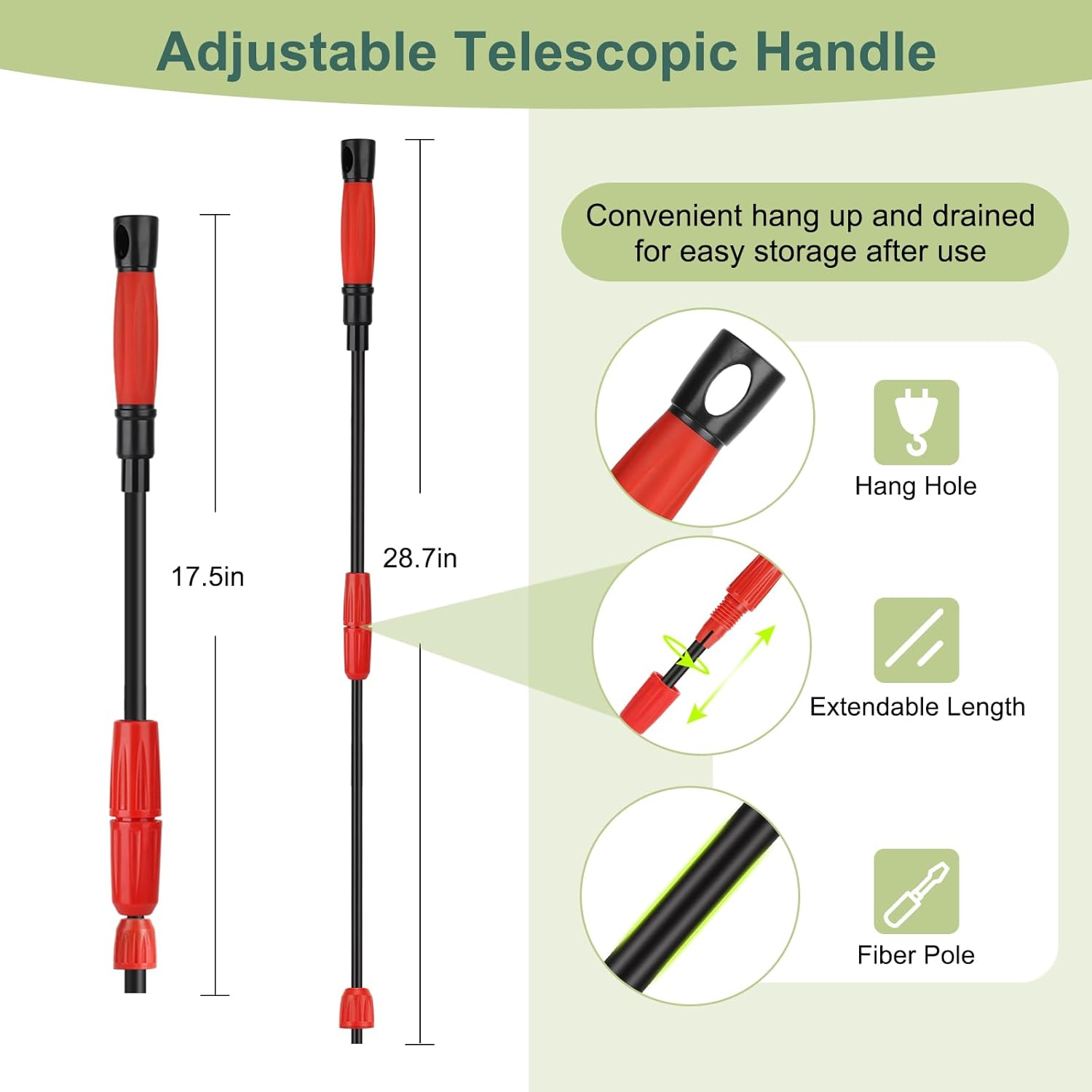 - Long Telescopic Handle: The polymer fiber handle protects you from getting hands wet, telescopic design makes it can be adjusted freely from 17.5" to 28.7" to meet various tank size needs, which can reach up to 27.5" deep. And each handle features a small hole at the handle end for hanging option which allows for air dry