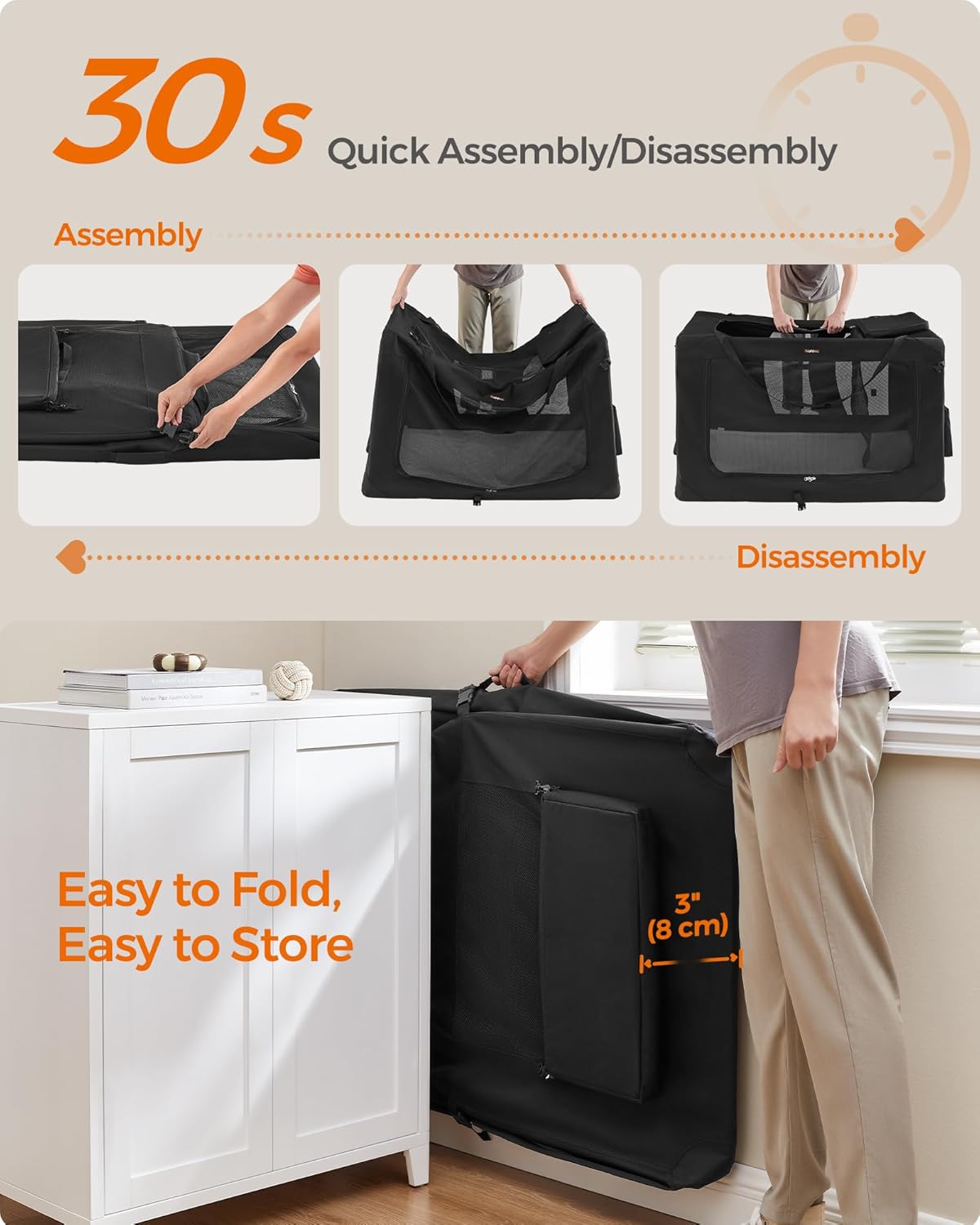 Feandrea 48 Inches Collapsible Soft Dog Crate, Portable Travel Dog Crate for Indoor and Outdoor Use, Dog Carrier Kennel with Safety Zippers, for Living Room, Car, Travelling, Camping, Black UPDC12H