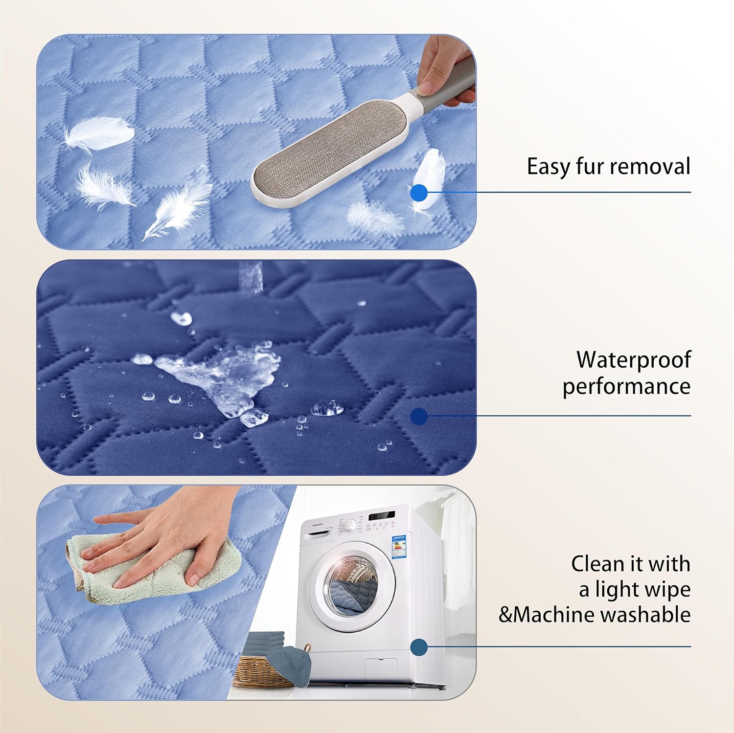 gogobunny 100% Double Sided Waterproof Dog Blanket Soft Pet Bed Cover Reversible Protect Furniture Couch Sofa Car for Puppy Large Dog Cat (Dark Navy/Light Navy, 68x82 Inch (Pack of 1))