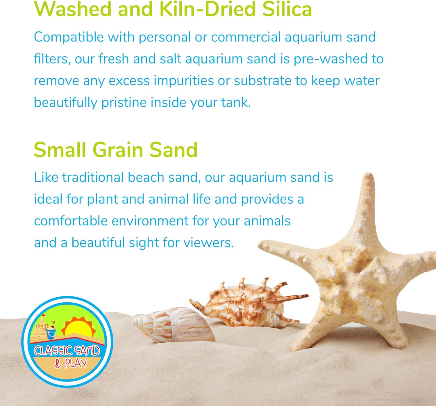 CLASSIC SAND & PLAY Natural Aquarium Sand for Freshwater and Saltwater Tanks, 40 lb. Bag, Improves Filter Life and Filtration Process, Pre-Washed Fine Sand, Natural