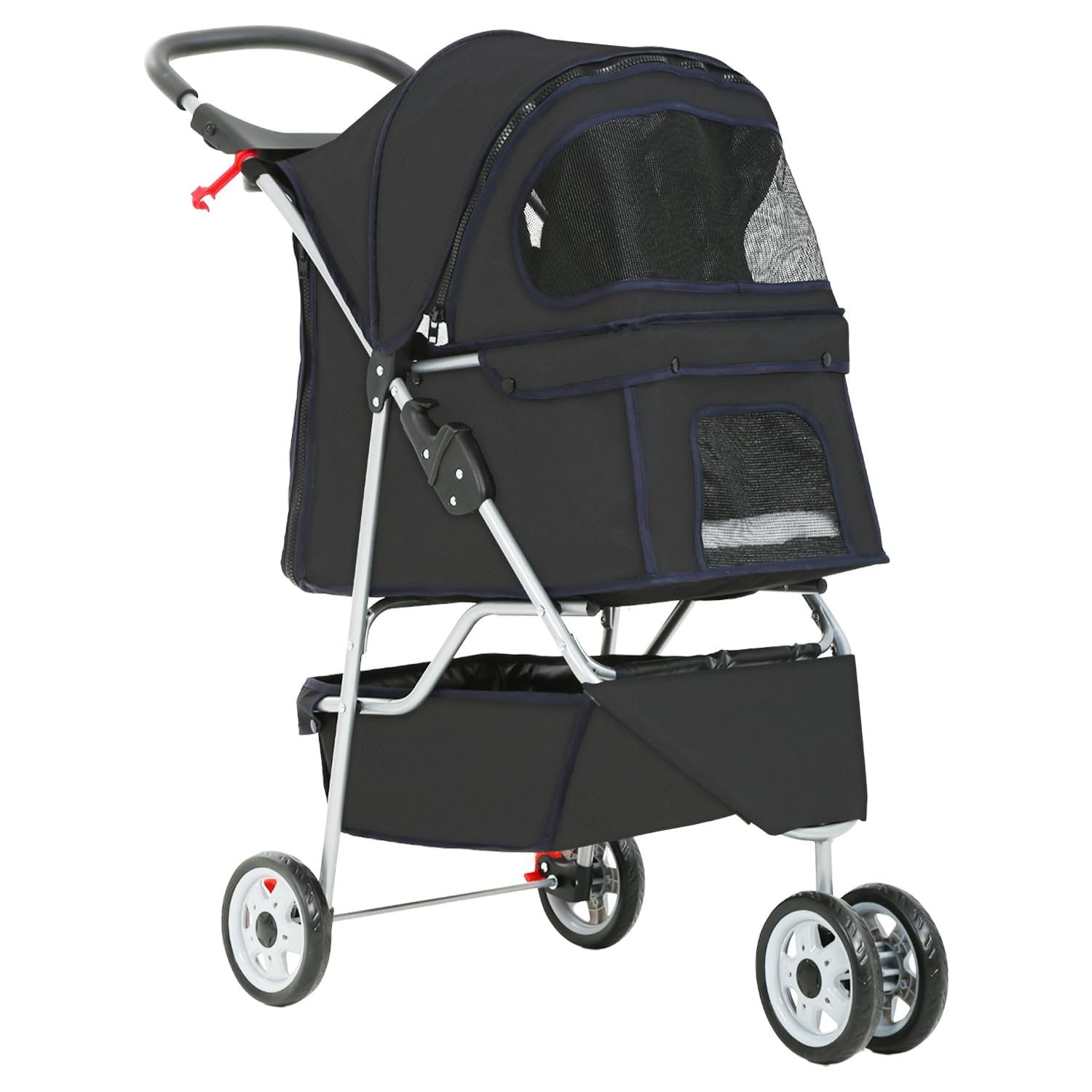Pet Stroller Dog Stroller Portable Travel 3 Wheel Foldable Cat Stroller with Storage Basket and Cup Holder for Small and Medium Cats,Dogs,Puppy,Black