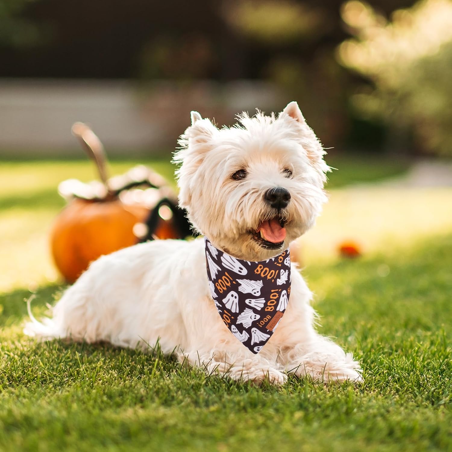 - Halloween Dog Bandanas: These halloween bandanas are designed with orange and black color, classic halloween elemets such as pumpkin, ghost, your pets will become stylish and attractive when wearing them during halloween season.