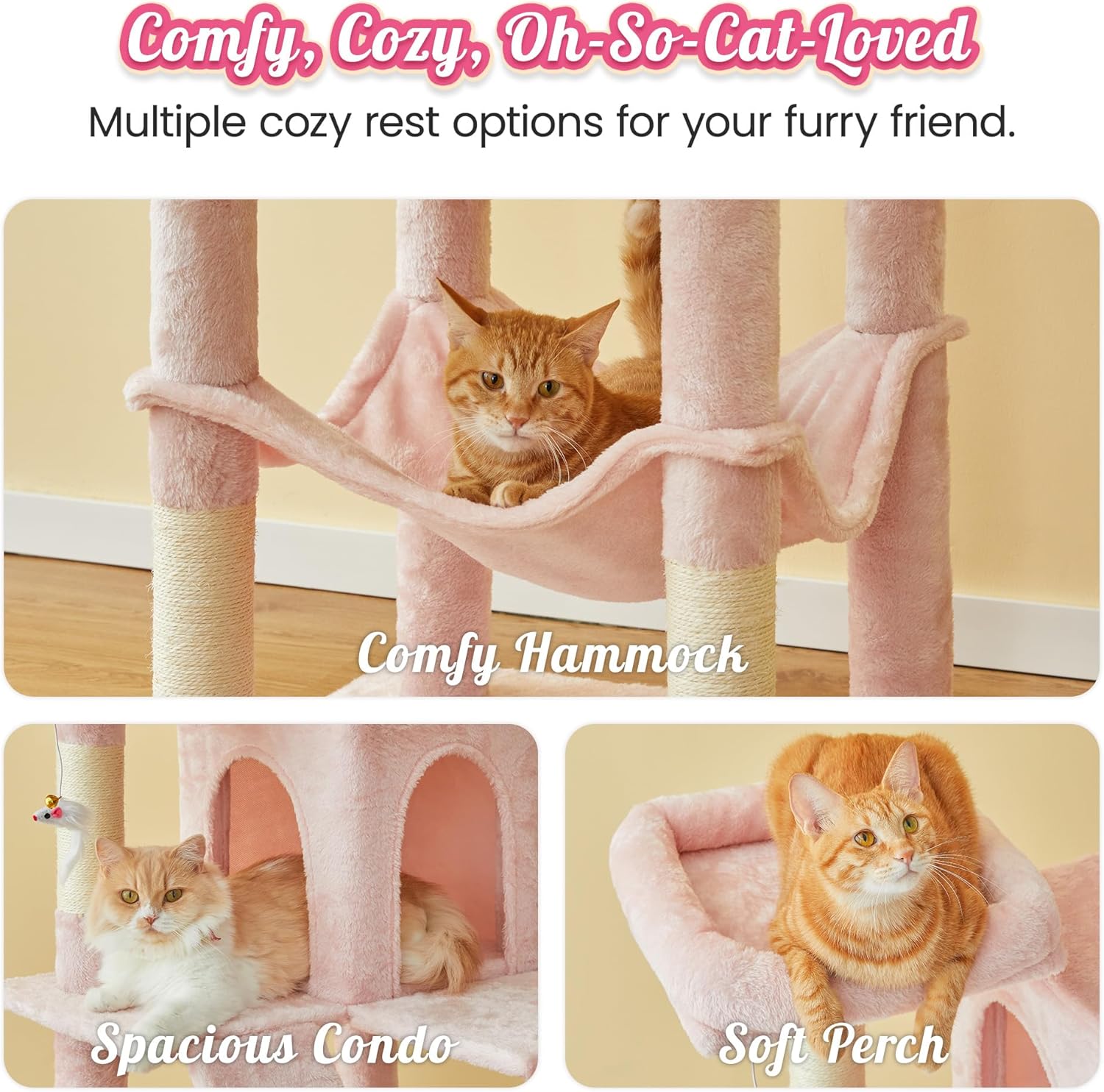 - Larger Pink Design: Our classic cat tree design has been upgraded to a bigger size with a lovely pink color. It adds a pretty pink to your home decor