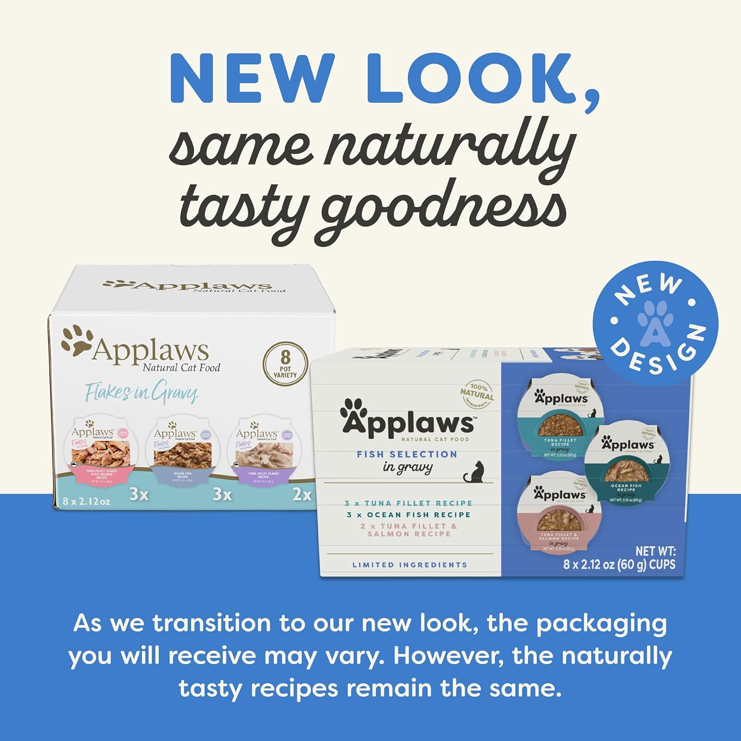 Applaws Natural Wet Cat Food in Gravy, Limited Ingredient, Grain-Free, No Artificial Cat Food Cups, Fish Selection in Gravy (18x 2.12 oz Cups)