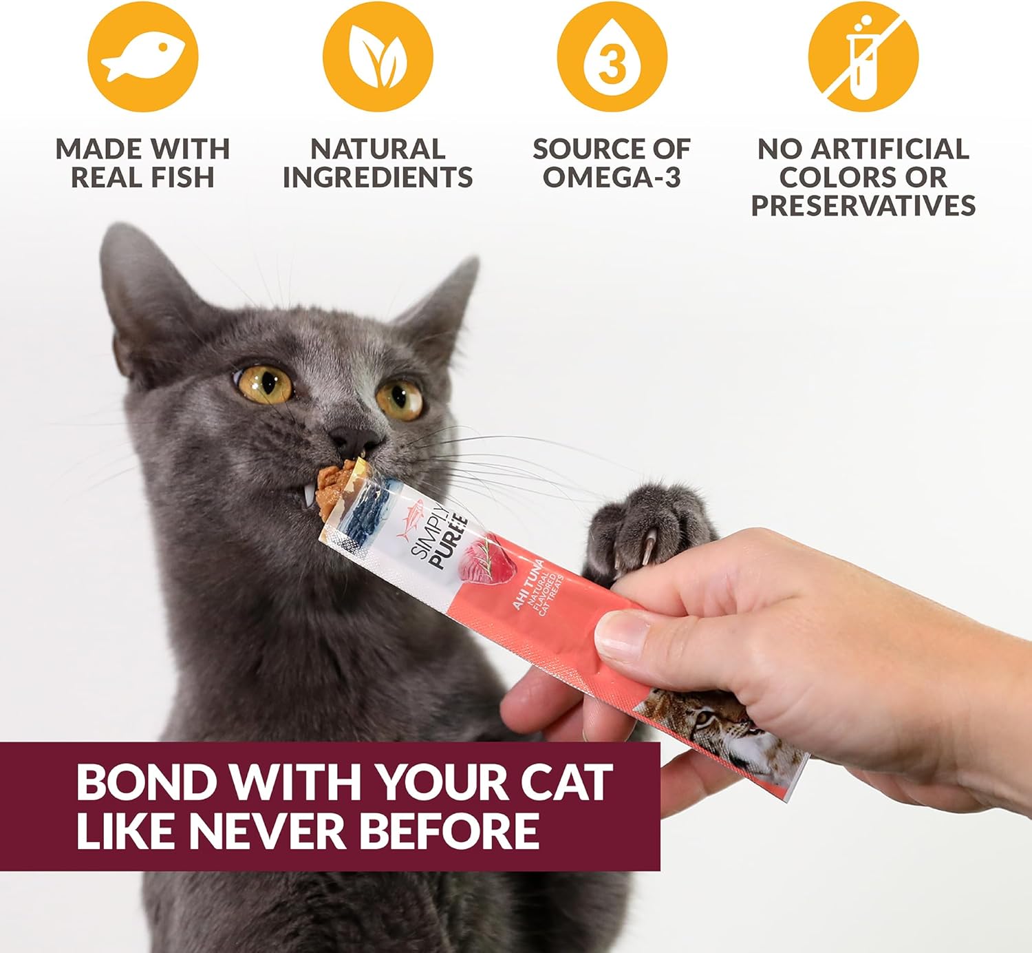 Lickable Cat Treats Exotic Fish Variety Pack 12ct - Ahi Tuna, Wild Pink Salmon, Red Snapper - Puree Bisque