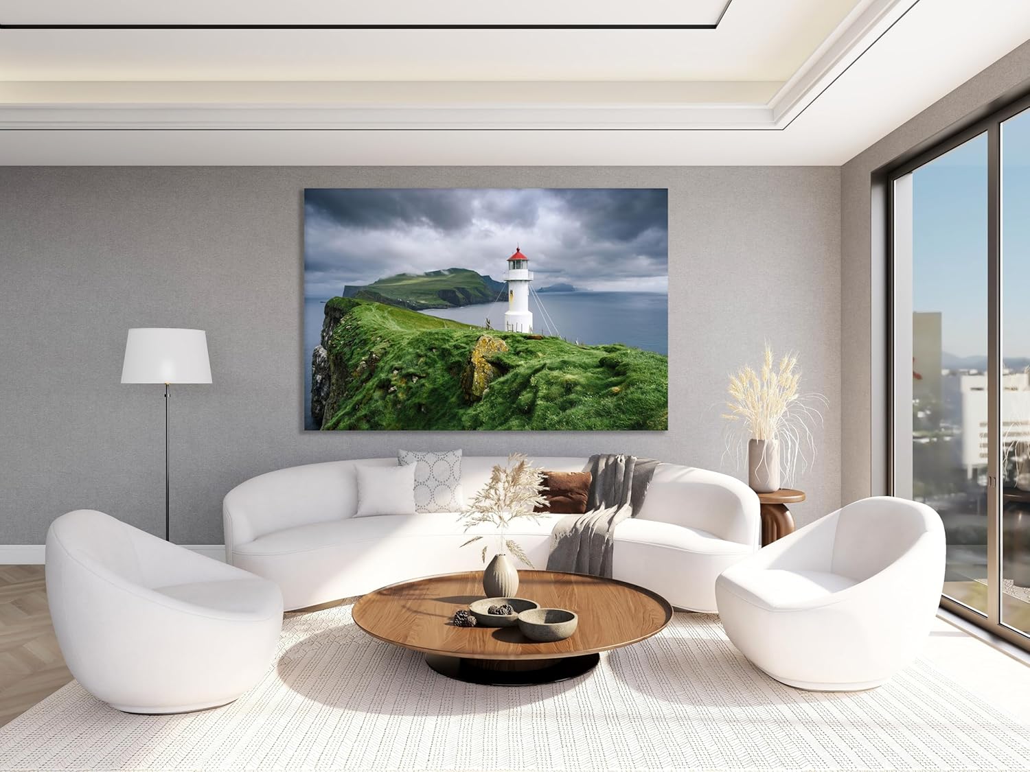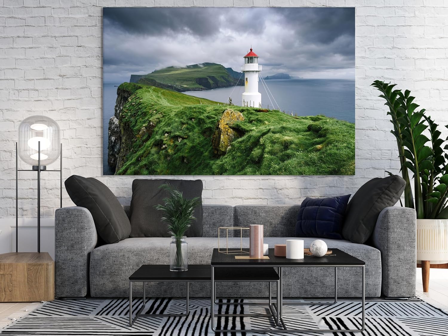 Nature Wall Art Prints - Ocean Forest Mountain Lake Canvas Landscapes - Small to Extra Large Living Room Bedroom Kitchen Bathroom Décor (Stormy Sky Lighthouse, 28L" x 41W")