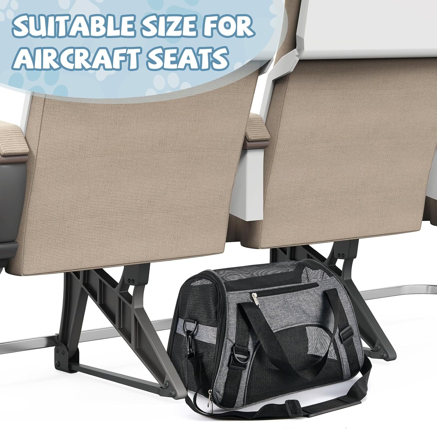 Sweetude 4 Pcs Cat Carrier Soft-Sided Pet Carrying Bag for Cat Under 13 Lbs, 16.9 x 11x 7.5 Inch, Portable Foldable Comfortable Bag for Small Pet Travel(Black, Gray)
