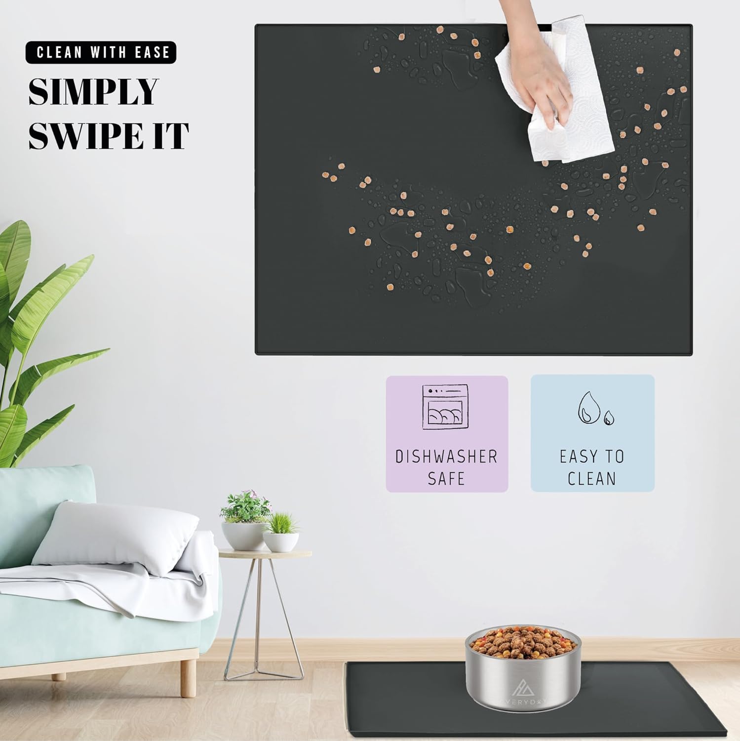 AVERYDAY 18x10'' Silicone Dog Mat for Food and Water, 0.63'' Edge Dog Food Bowl Mats for Floor Waterproof, Dogs Water Mat for Sloppy Drinker, Non Slip Rubber Pet Feeding Mats for Indoor Dogs and Cats