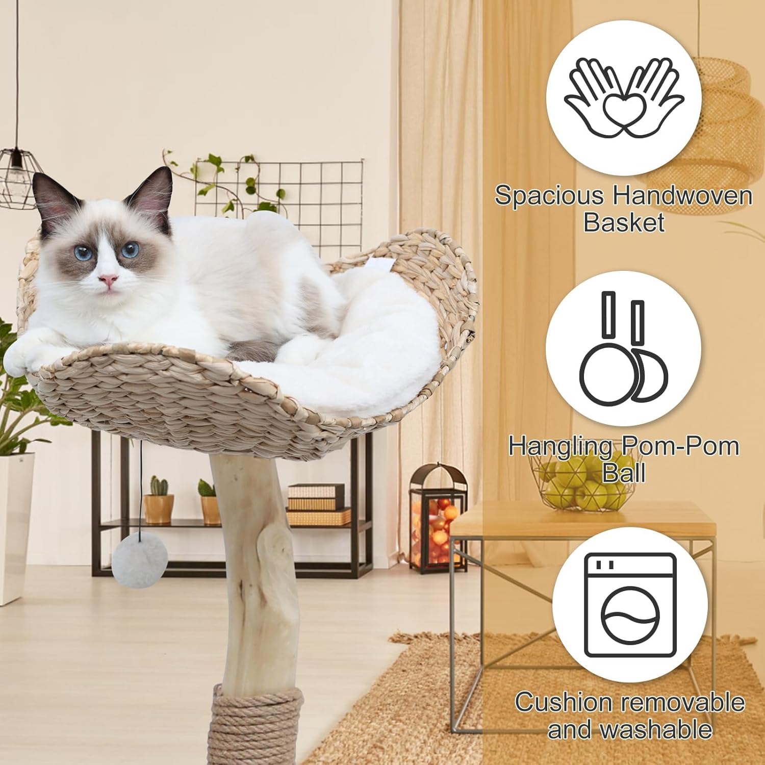 - 【Chic & Minimalist Cat Tree】The boho cat tree will never ruin the vibe like normal bulky cat furniture, cause is not only made for your feline friends but also designed to blend in with other furnishings in your space with its sleek and ultra-minimalist design.