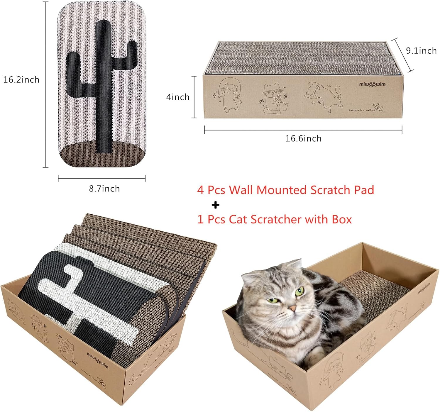 - 【GREAT VALUE】Our Products Include 4 Pcs Cat Scratcher Wall Mounted Scratch Pad +1 Pcs Cat Scratcher Box(16.6*9.1*4 inch),This cat scratcher that will save you money and protect your furniture from being damaged.