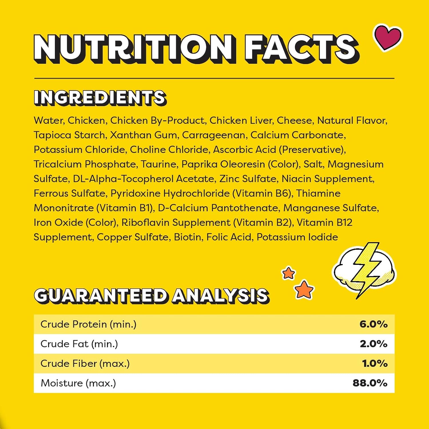 - Made with Real Chicken and Cheese: Your favorite feline will enjoy two irresistible flavors in one lickable spoon