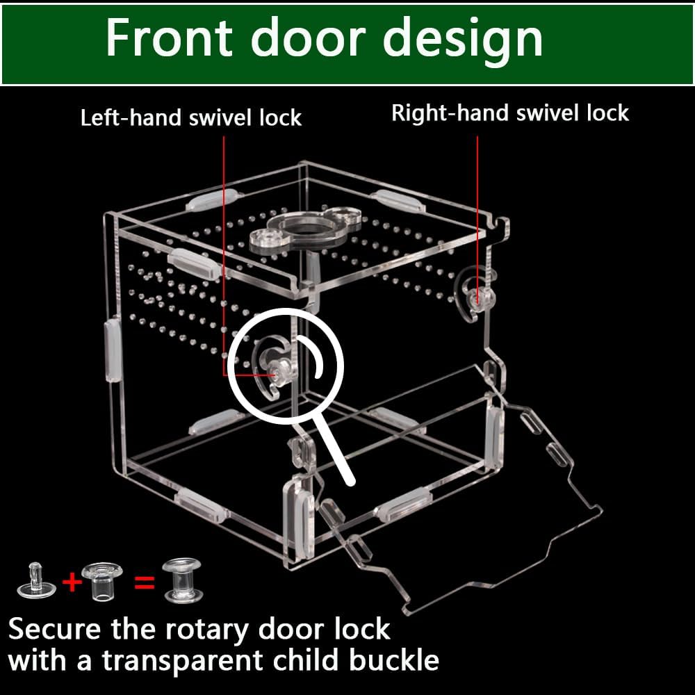 - Unique Design:The tarantula enclosure swivel lock prevents pets from escaping.The top strong magnetic feeding port,convenient for the owner to feed the pet